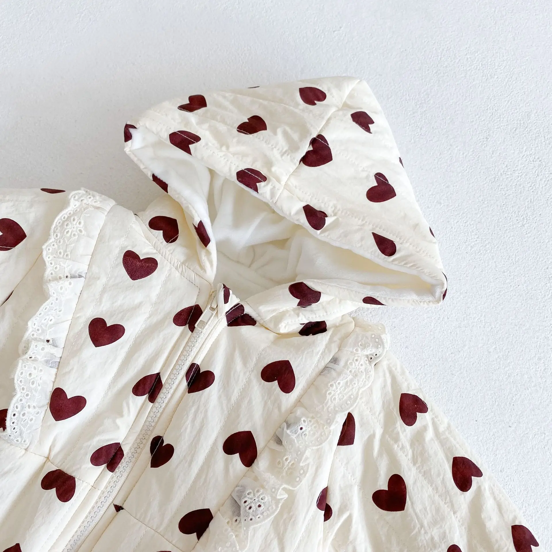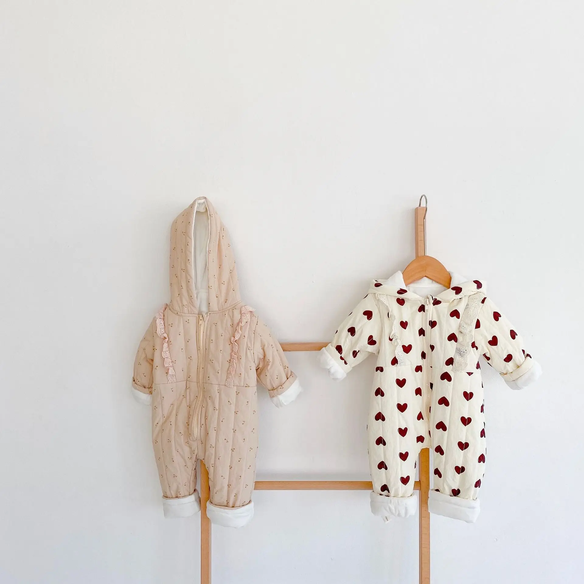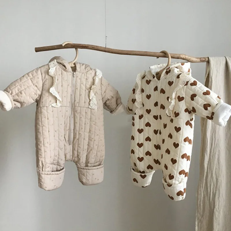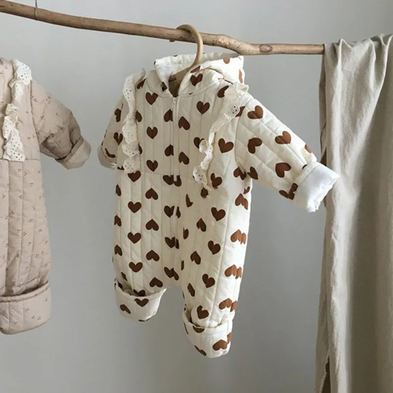 Комбинезон детский зимний в Корейском стиле, с капюшоном, утепленный, с сердечками, для девочек 0-24 месяцев