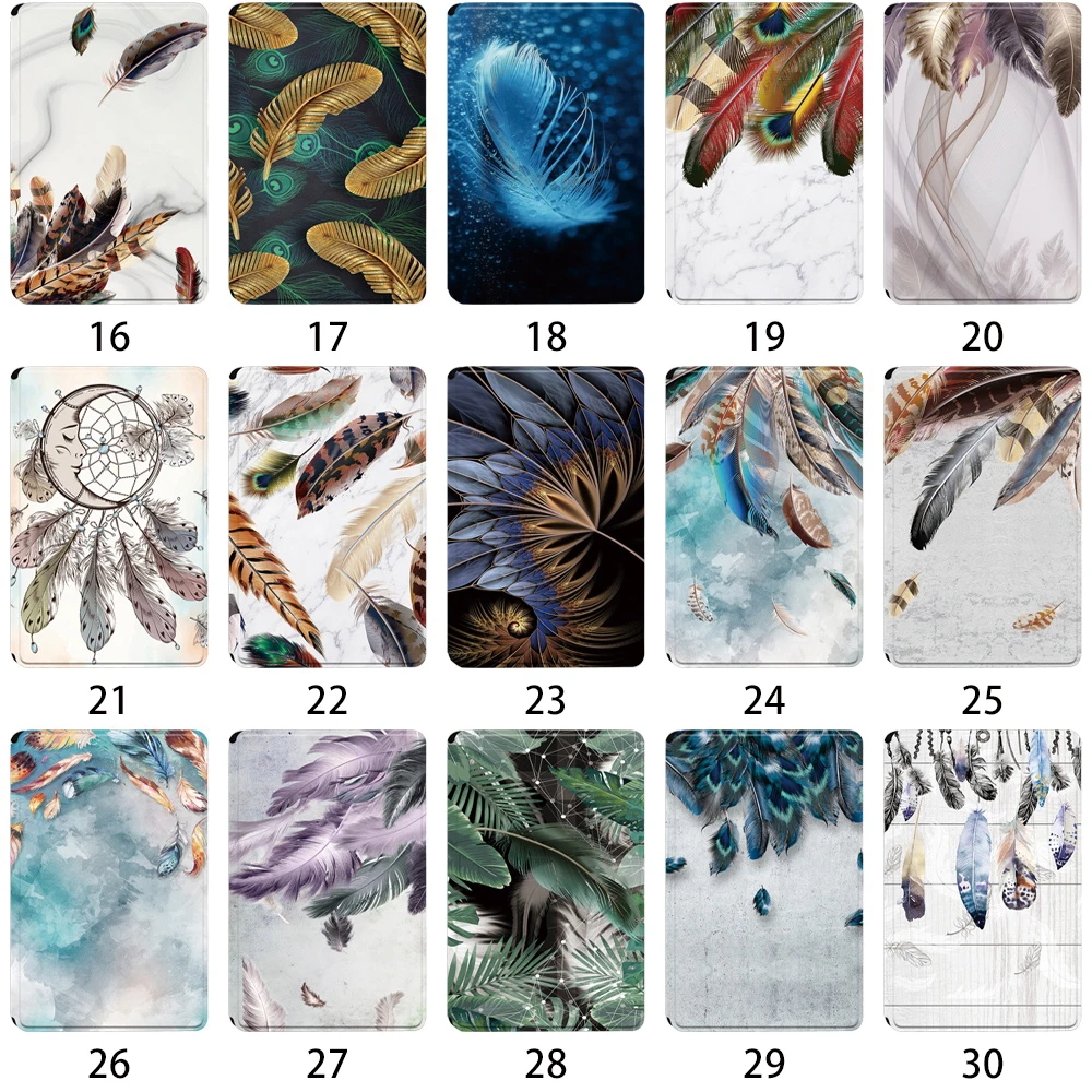 5. [Стиль]: рисунки из перьев, насыщенные цвета, различные формы, с элегантным характером;