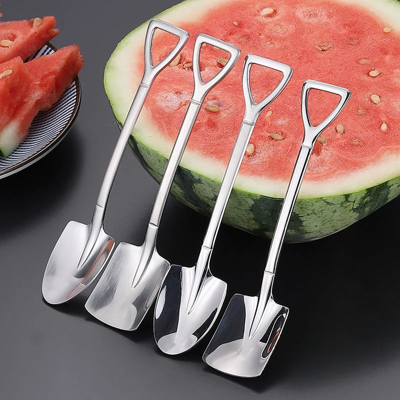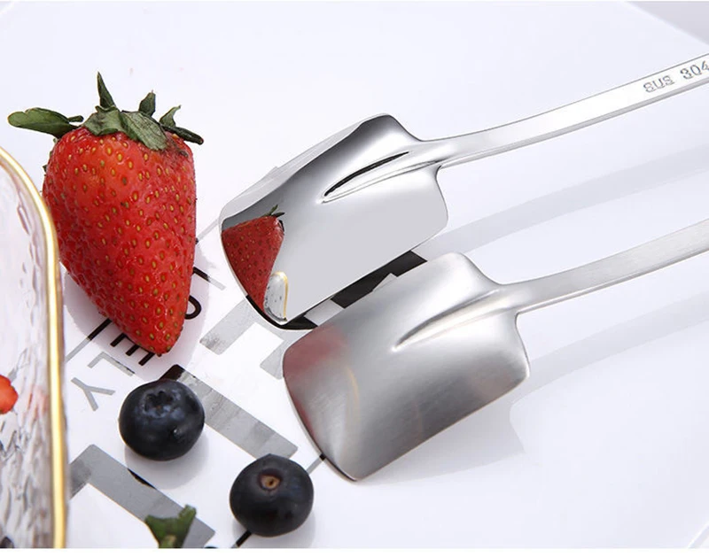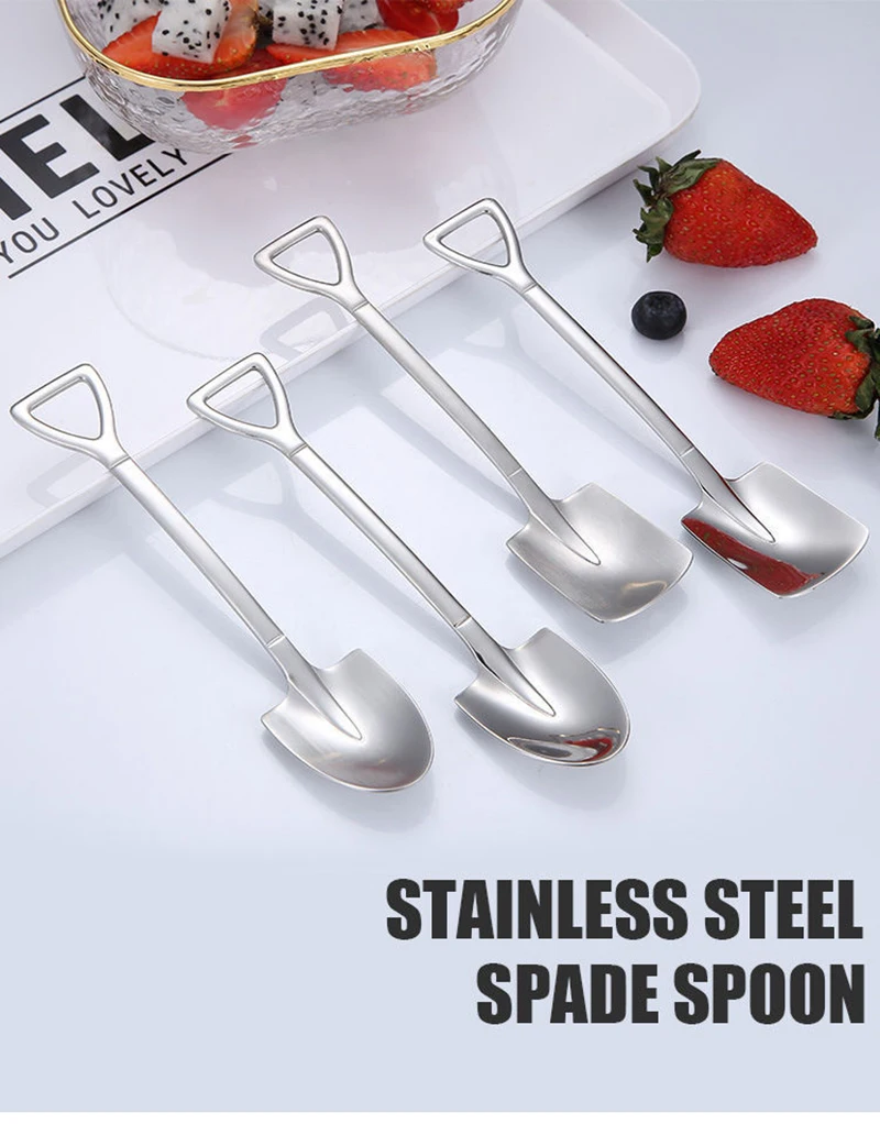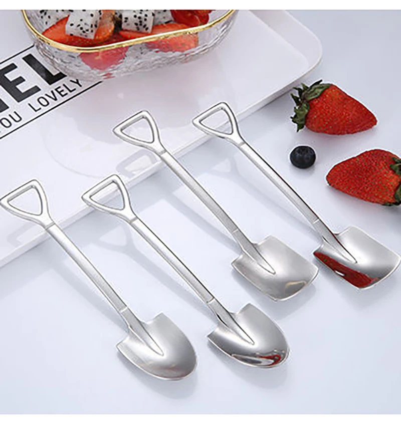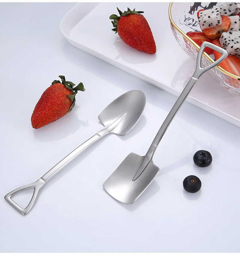 1. Эта кофейная ложка изготовлена из нержавеющей стали, с гладкими и круглыми краями и хорошим прикосновением. 2. Креативный дизайн лопаты, красивый и интересный. 3. Цельный процесс формования, прочный и не легко повредить. 4. Может использоваться для питья кофе, чая, закусок, фруктов и т. Д.