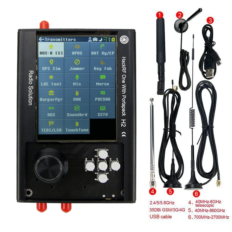 Комплект PortaPack H2 + HackRF One, антенна, алюминиевый чехол, программно-определяемое радио 1 мгц-6 ГГц в сборе, 3,2 дюйма