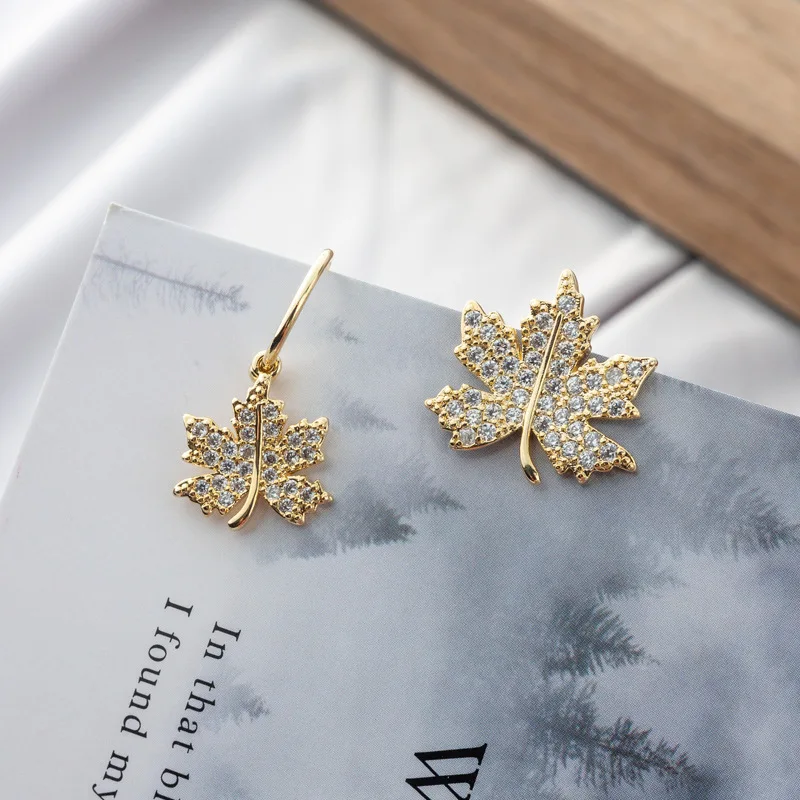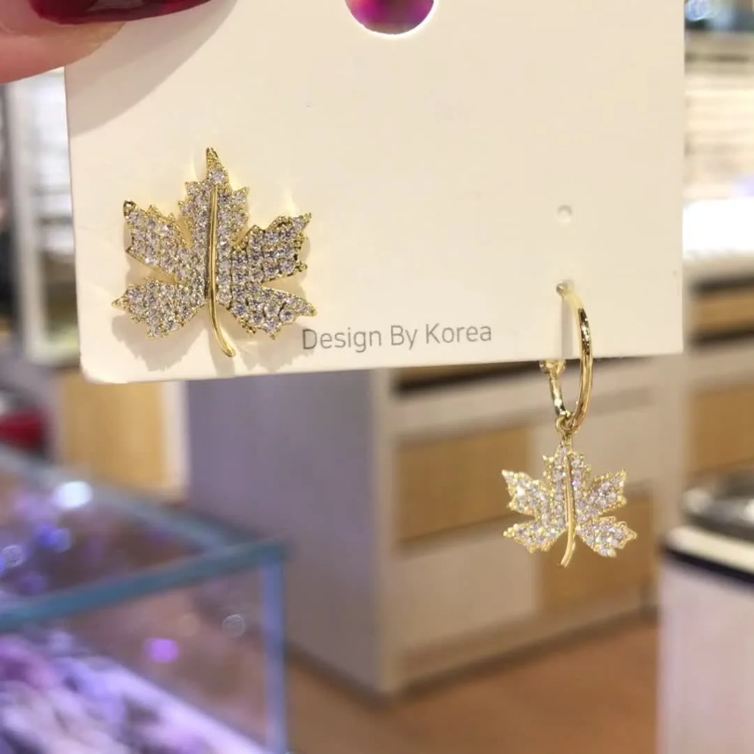 Ассиметричные корейские модные темпераментные висячие серьги с цирконом и Кленовым листом для женщин и девушек универсальные серьги ювелирные изделия LS911