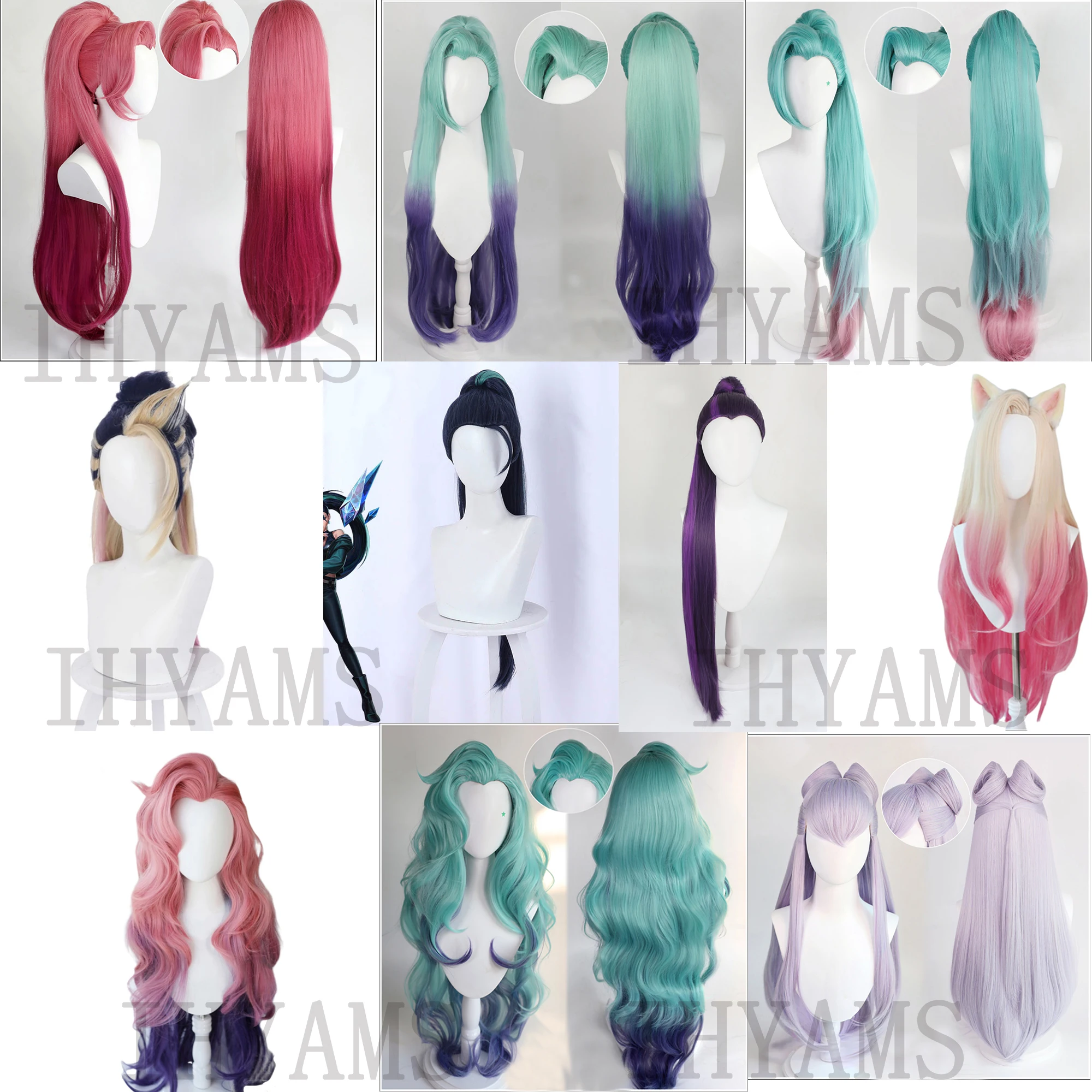 Женский термостойкий парик для косплея, термостойкий парик LOL KDA The Baddest Ahri Akali Kaisa evelkeen Seraphine с шапочкой для костюма
