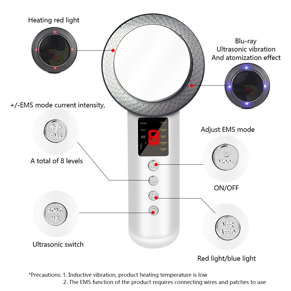 Описание:Цвет: белыйСтиль: США, ЕС, Великобритания, АвстралияМатериал: ABS, сплавФункция: ультразвуковая вибрация, красный и синий уход за кожей, поглощение жира, потребление жира, здоровая потеря веса, EMS микротоковый массажРежим EMS: постукивание, массаж, замешивание, скребок, похлопываниеEMS передача: уровень 8Питание: 100V-240VПотребляемая мощность: 12 ВтКлючевые функции:Кнопка MOOE: включение/выключение, настройка режима EMSКнопка EMS: +/-EMS режимов интенсивности тока, всего 8 уровнейКнопка NFR ARED: красный/синийКнопка песни: ультразвуковой переключательРежим загрузки: Длительное нажатие в течение 3 секунд[Напоминание] обезжириватель не имеет функции нагрева, не нагревается и не вибрирует. Но инфракрасный немного теплый. Для достижения лучших результатов необходимо использовать с гелем для похудения или эфирным маслом. Продолжайте есть и заниматься спортом. Если у вас есть какие-либо другие вопросы, пожалуйста, свяжитесь с нами, и мы поможем вам решить их.Меры предосторожности:1. Индуктивная вибрация, низкая температура нагрева изделия2. Функция EMS продукта требует соединения проводов и патчей для использованияРазмер игрушки: 18*8*6 смСписок взломов:1 шт. * устройство для похудения1 шт. * вилка1 шт. * Соединительный провод2 пары * электродные накладки1 шт. * Руководство пользователя на английском языке