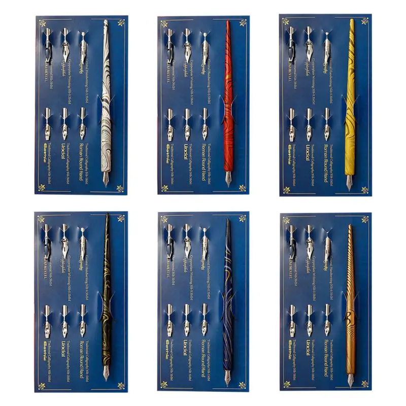 Мрамор древесины манга каллиграфии Dip Держатель для ручки с 6 перьев для надписи Skiching искусство Рисование инструмент для живописи