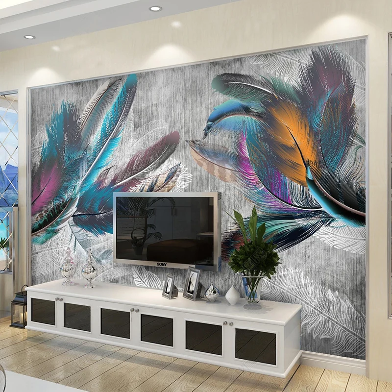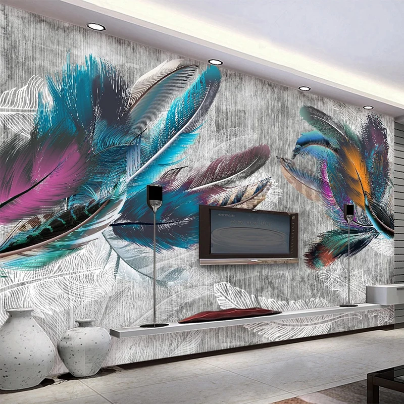 Настенные 3D стикеры на заказ в стиле ретро, в скандинавском современном стиле, цветные линия перьев, фотообои для гостиной, фоновая роспись за телевизор, домашний декор