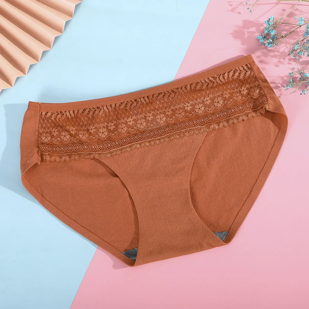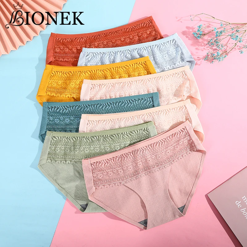 Трусики BIONEK женские из мягкого хлопка, пикантные удобные кружевные брифы, дамское нижнее белье, графитовые Повседневные трусики