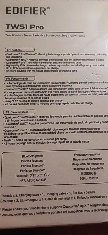 Отлично! Edifier всегда совершенствуется в ваших продуктах, и на этот раз Tws1 pro ничего не оставляет. Спасибо продавцу, очень быстро, прибыл в течение 12 дней здесь в Сан-Паулу/столица.