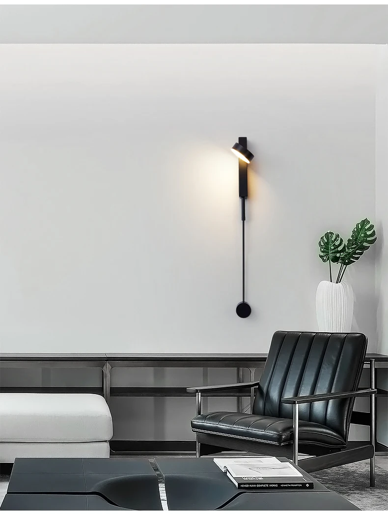 Светодиодные Настенные светильники с переключателем для спальни, прикроватные, черные, вращающиеся, современные, для лофта, лестницы, коридора, внутреннее украшение, бра, светильник