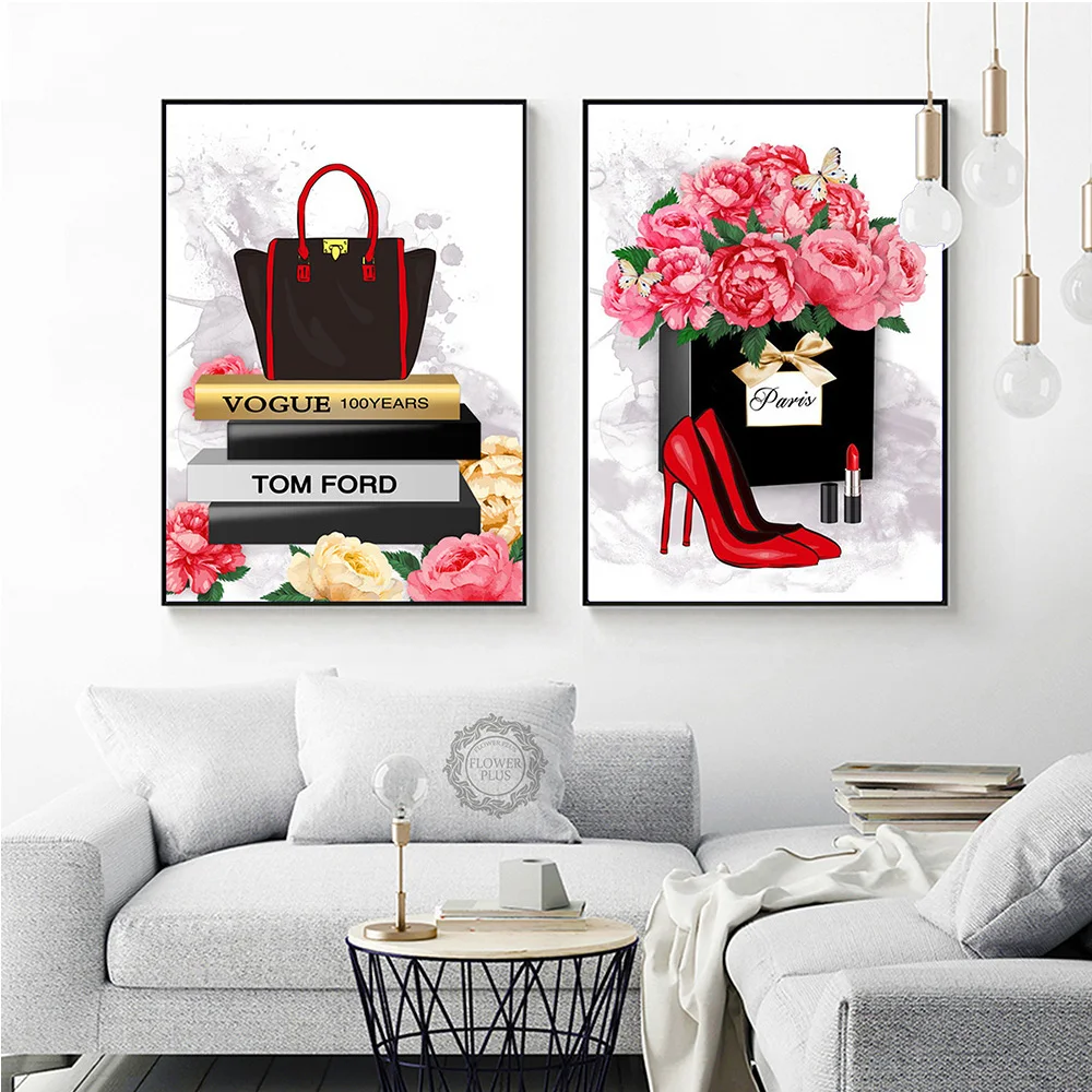 Модный журнал, настенные художественные принты, высокие каблуки и п...