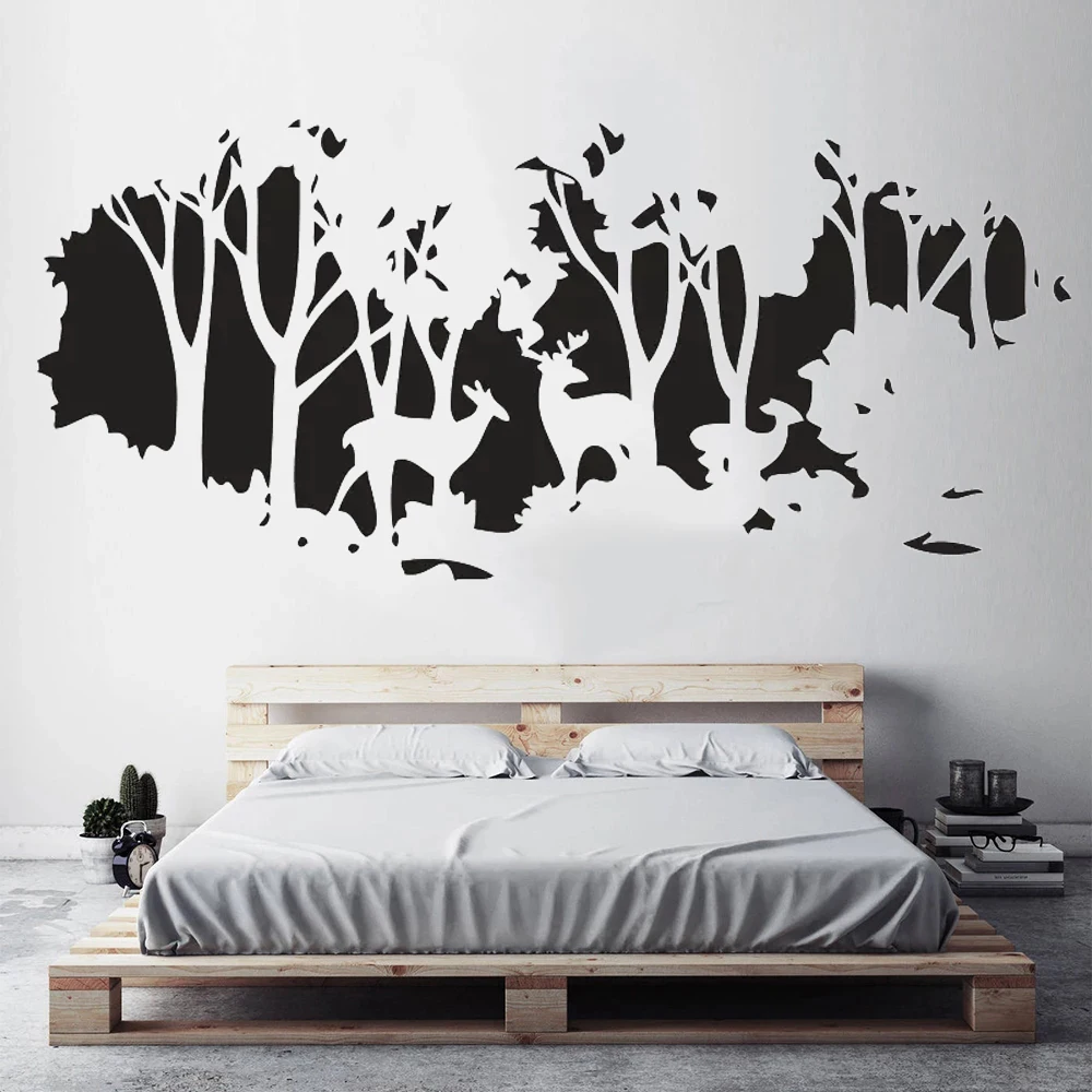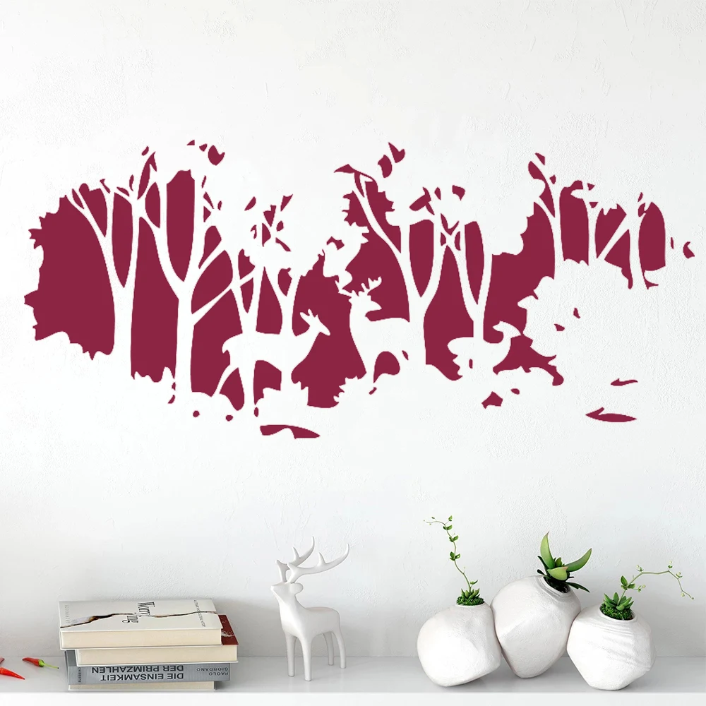 Виниловые наклейки на стену с силуэтом леса, деревья с оленем, фрески для дома, гостиной, декоративный плакат в естественном стиле HY2012