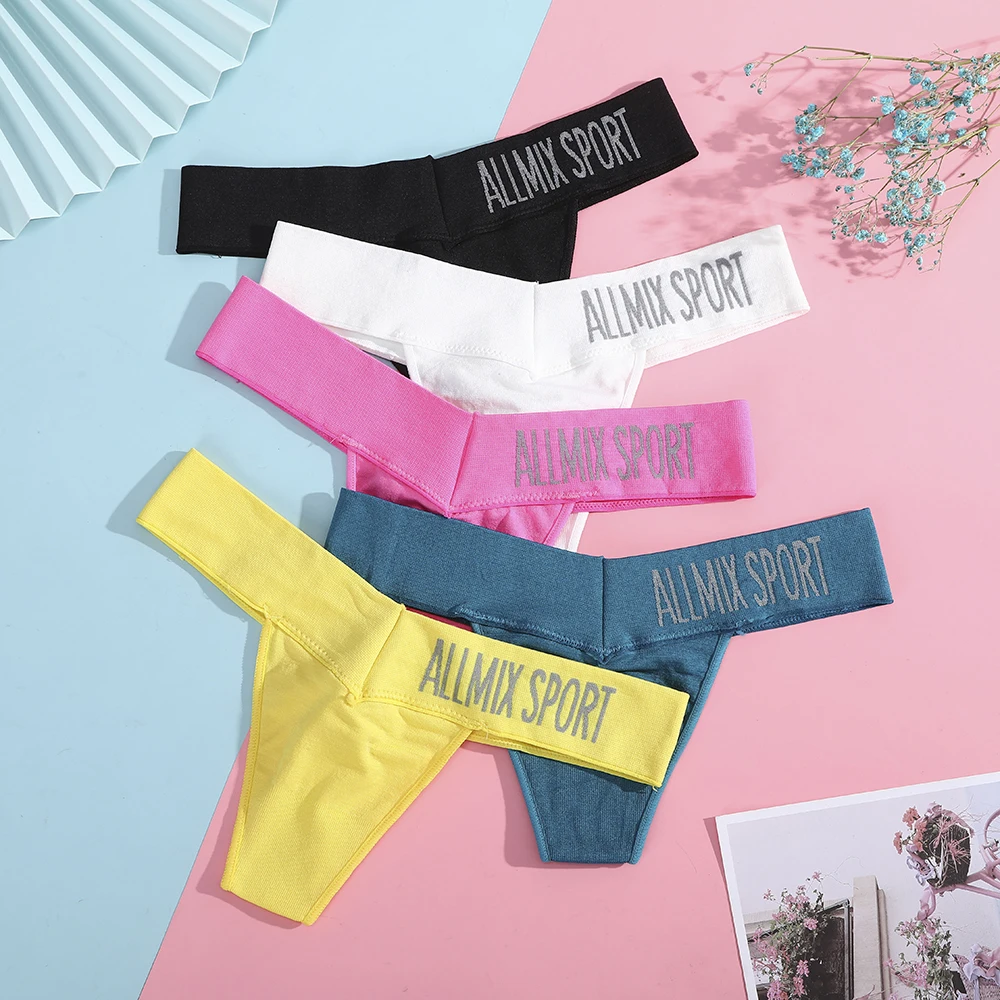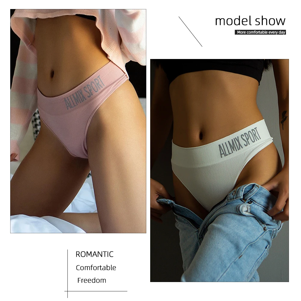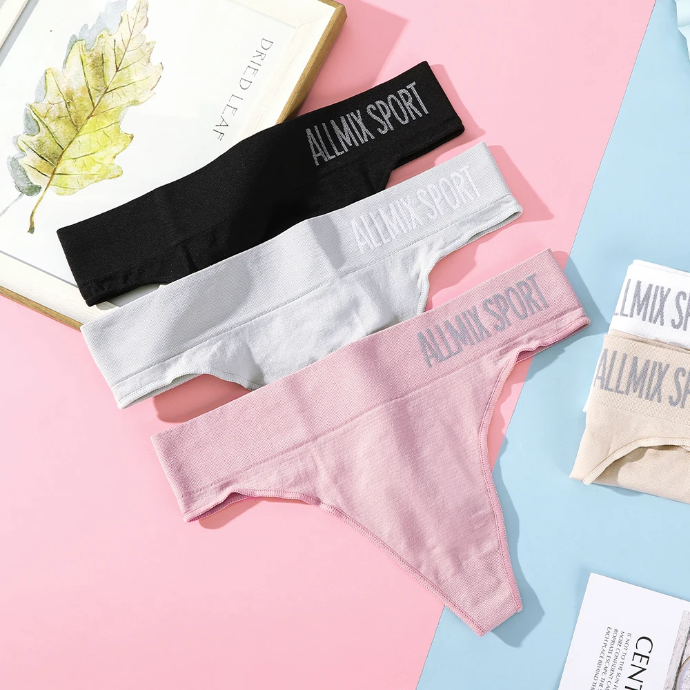 Трусики-стринги женские, хлопковые, бесшовные, с надписью