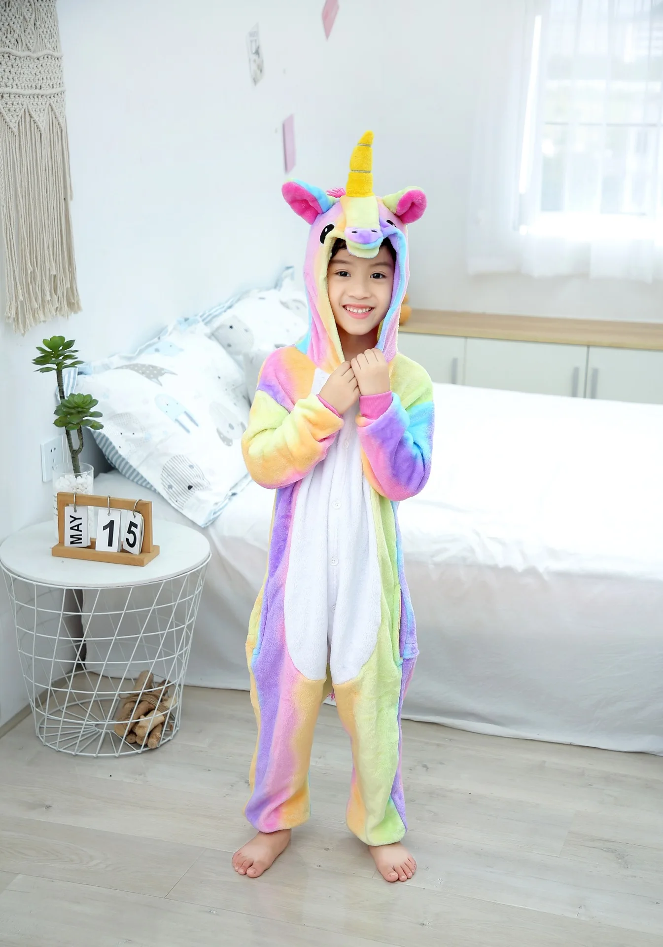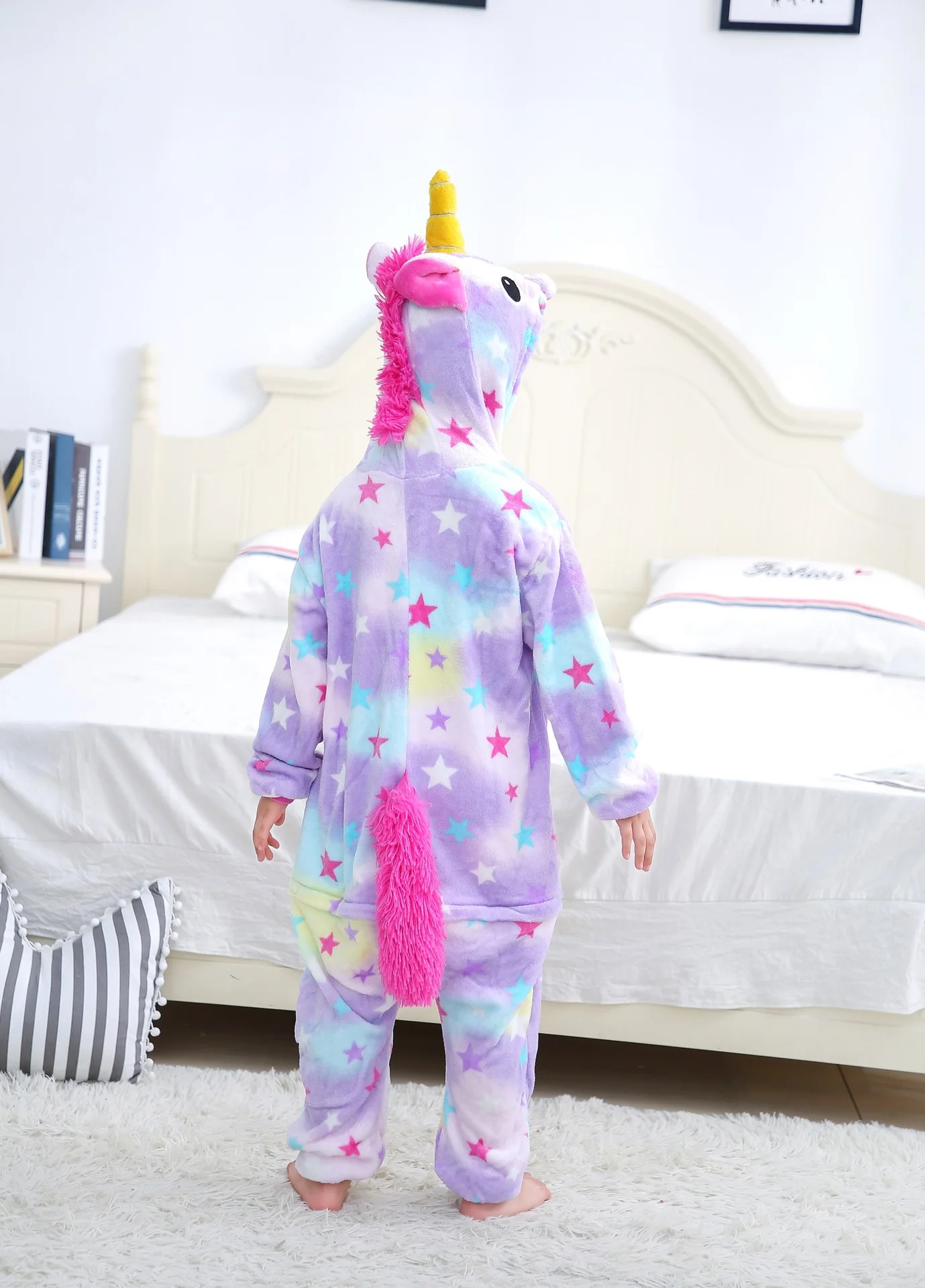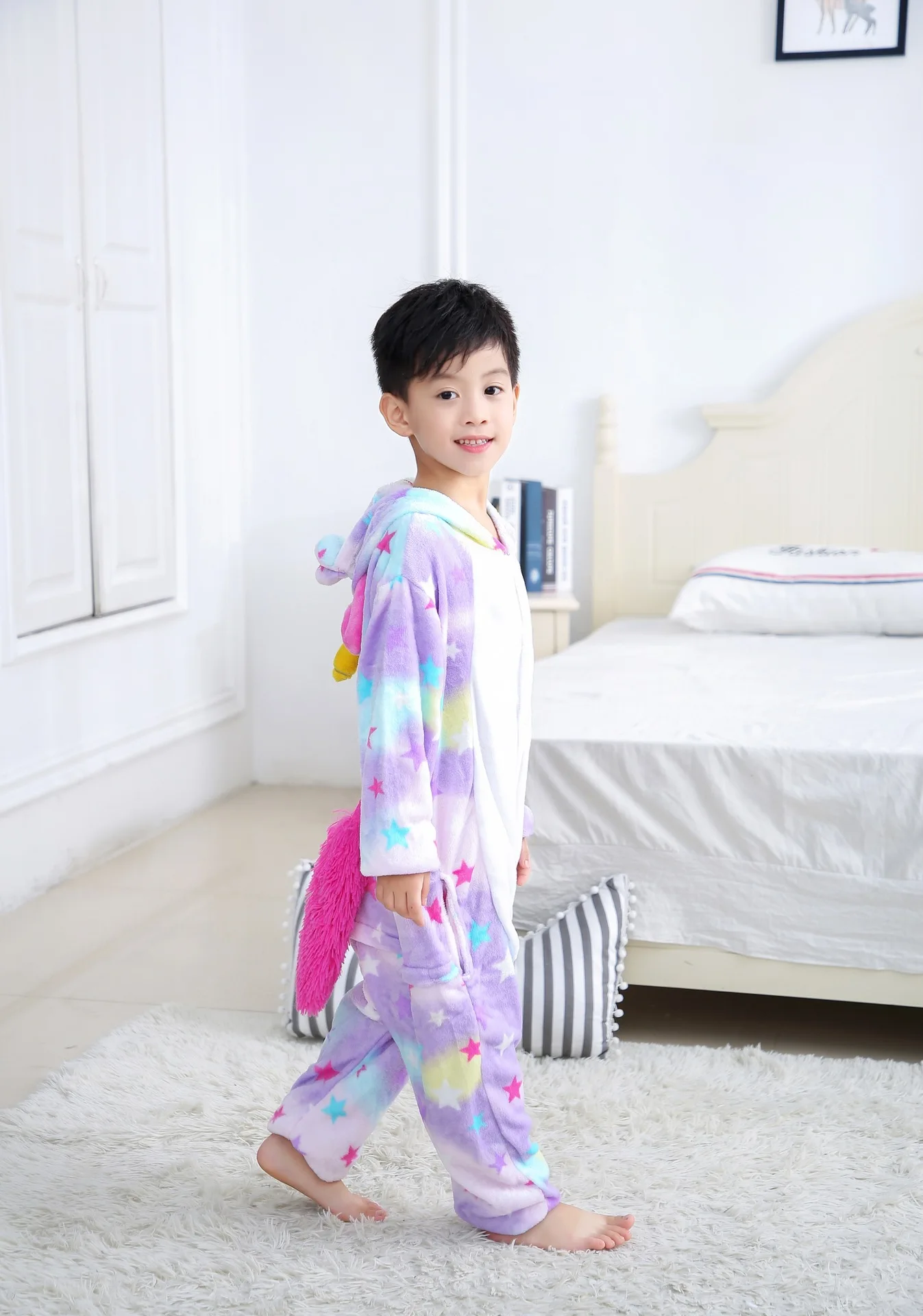 Детские пижамы для мальчиков и девочек, пижамы в виде единорога, фланелевые детские костюмы со стежками, одежда для сна с животными, зимние комбинезоны с кошками, Прямая поставка