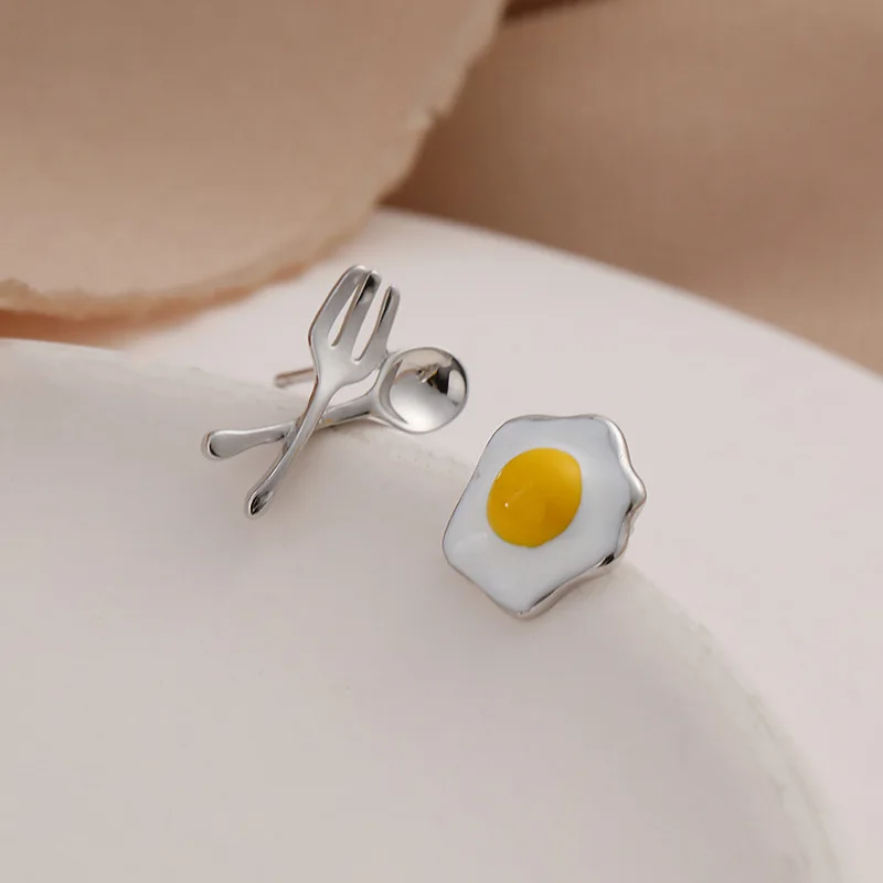 Серьги-гвоздики женские в форме ножа и вилки, ассиметричные серьги