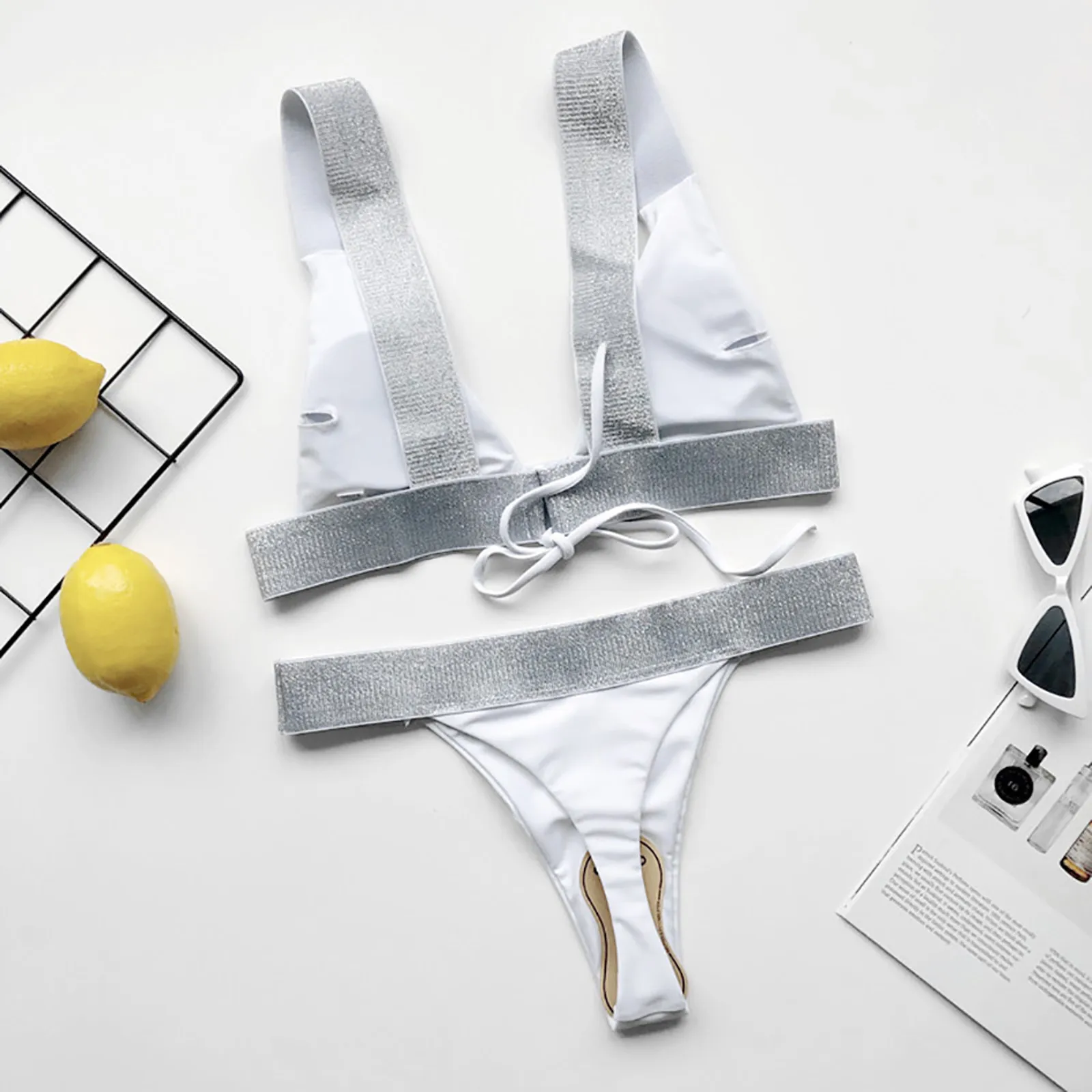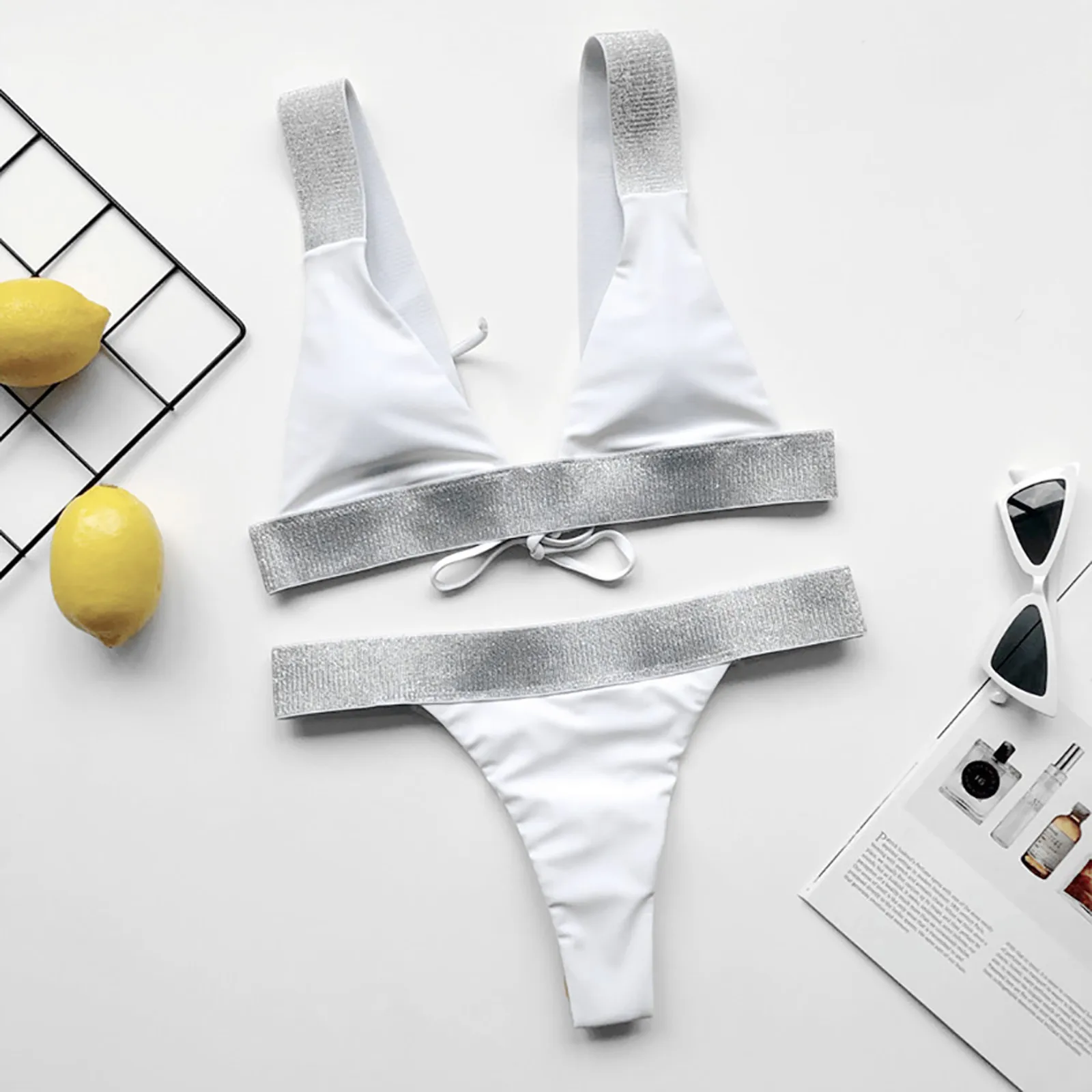 Купальник женский спортивный, Бандажное бикини с чашками пуш-ап, пикантный однотонный, хлопчатобумажные купальники, пляжная одежда, 20212021
