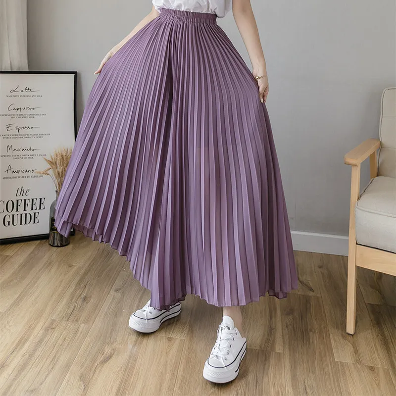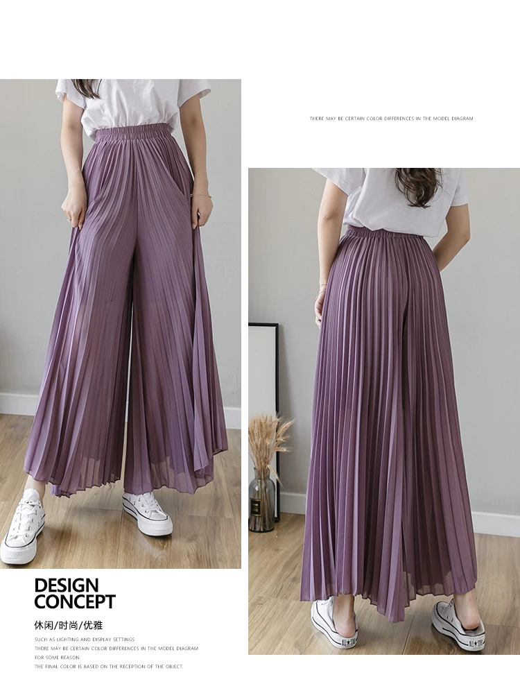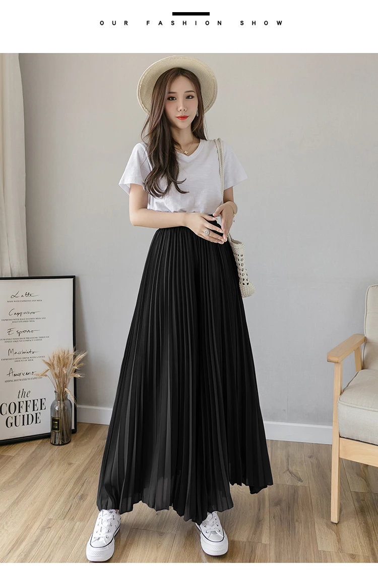 Плиссированные Женские Брюки-кюлоты, шифоновые летние брюки с высокой талией, широкие брюки, свободные брюки, брюки палаццо в Корейском стиле, длинная юбка