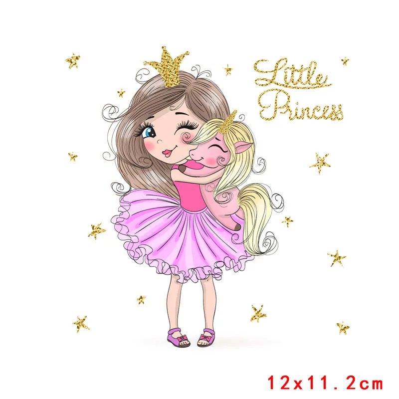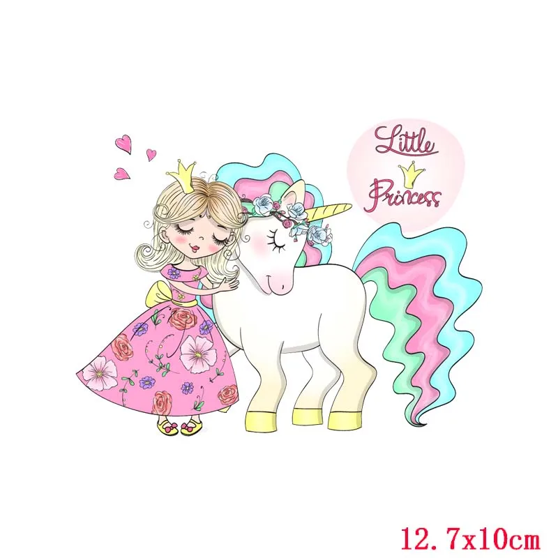 Красивая принцесса, теплопередача винила для одежды, милые животные, переводы единорога для одежды, аппликация, наклейки для футболки «сделай сам»