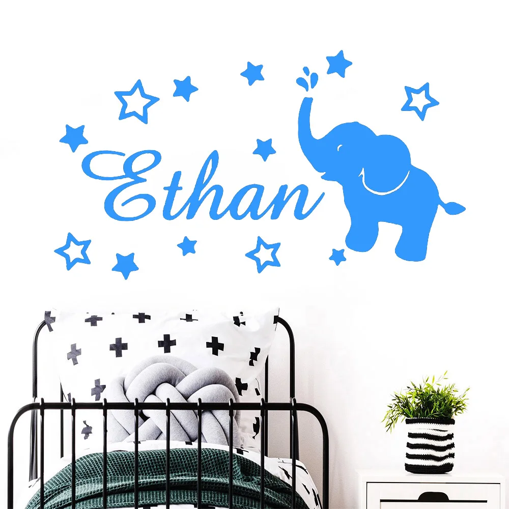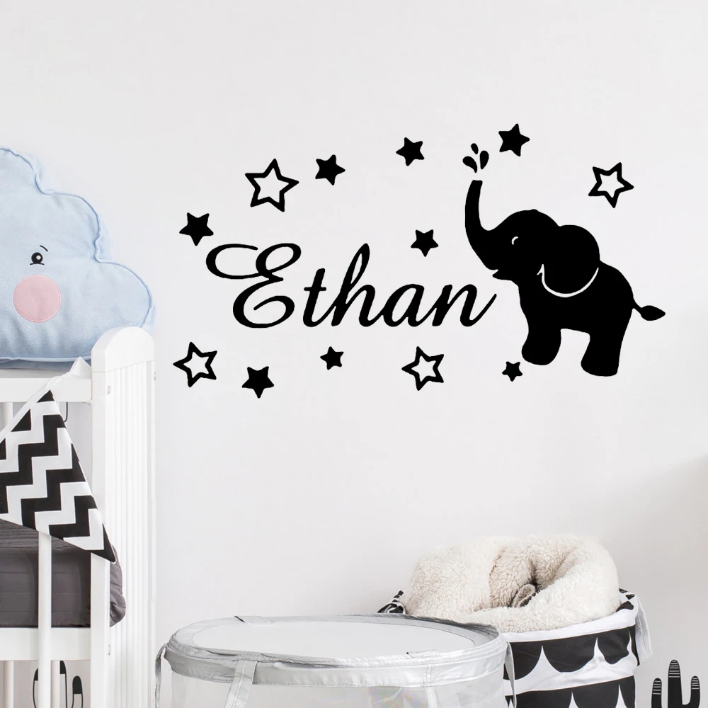 Наклейка на стену в виде слона с именем на заказ, наклейка с именем мальчика и девочки, декор в виде луны и звезд для детской спальни, детские обои, искусство B520