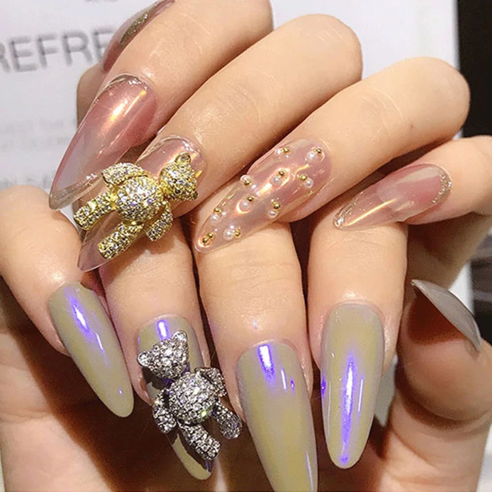 3D украшения для ногтей, с золотым медведем, из сплава циркона Стразы для дизайна ногтей, стразы, аксессуары для ногтей, 1 шт.