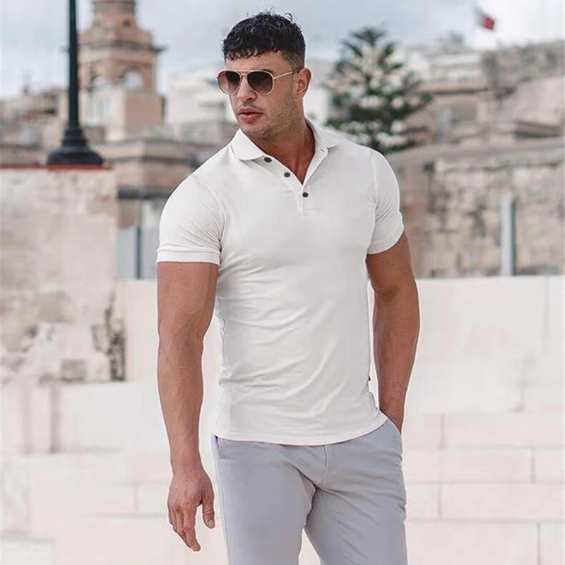 Мужская Однотонная рубашка-поло для фитнеса, хлопковая рубашка-поло...