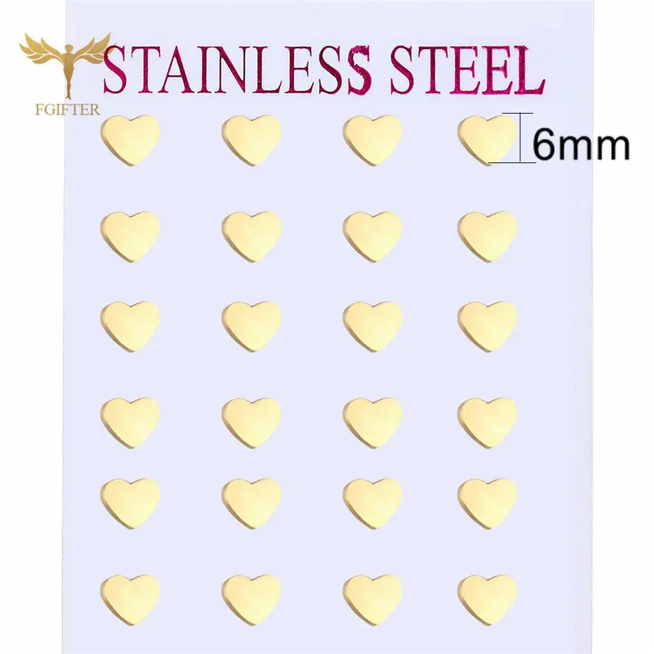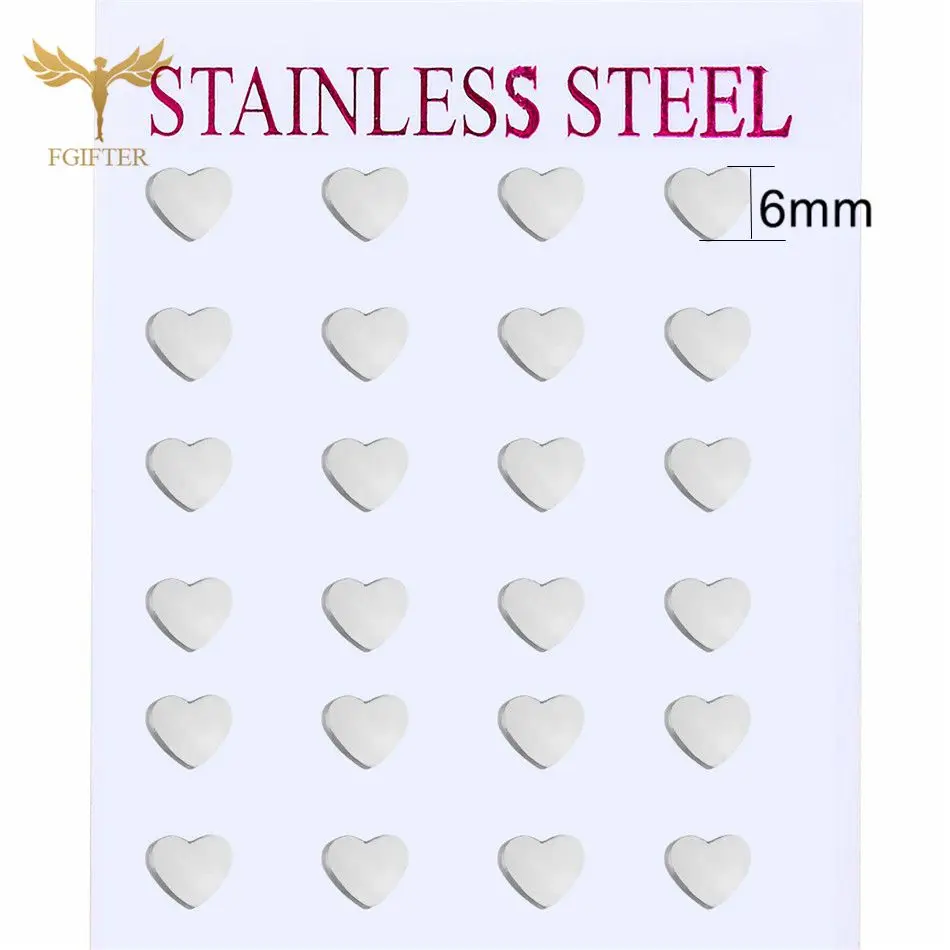 Минималистичные женские и мужские серьги-гвоздики в форме сердца модные парные аксессуары для влюбленных ювелирные изделия из нержавеющей стали оптовая продажа 12 пар