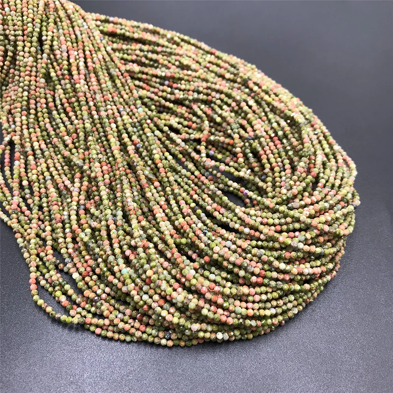 Бусы из натурального камня, 2 мм граненые бусины из унакита свободно Прикрепленный Драгоценный Камень Бисер для изготовления ювелирных изделий для браслетов и ожерелий DIY, иных Accessries бусины