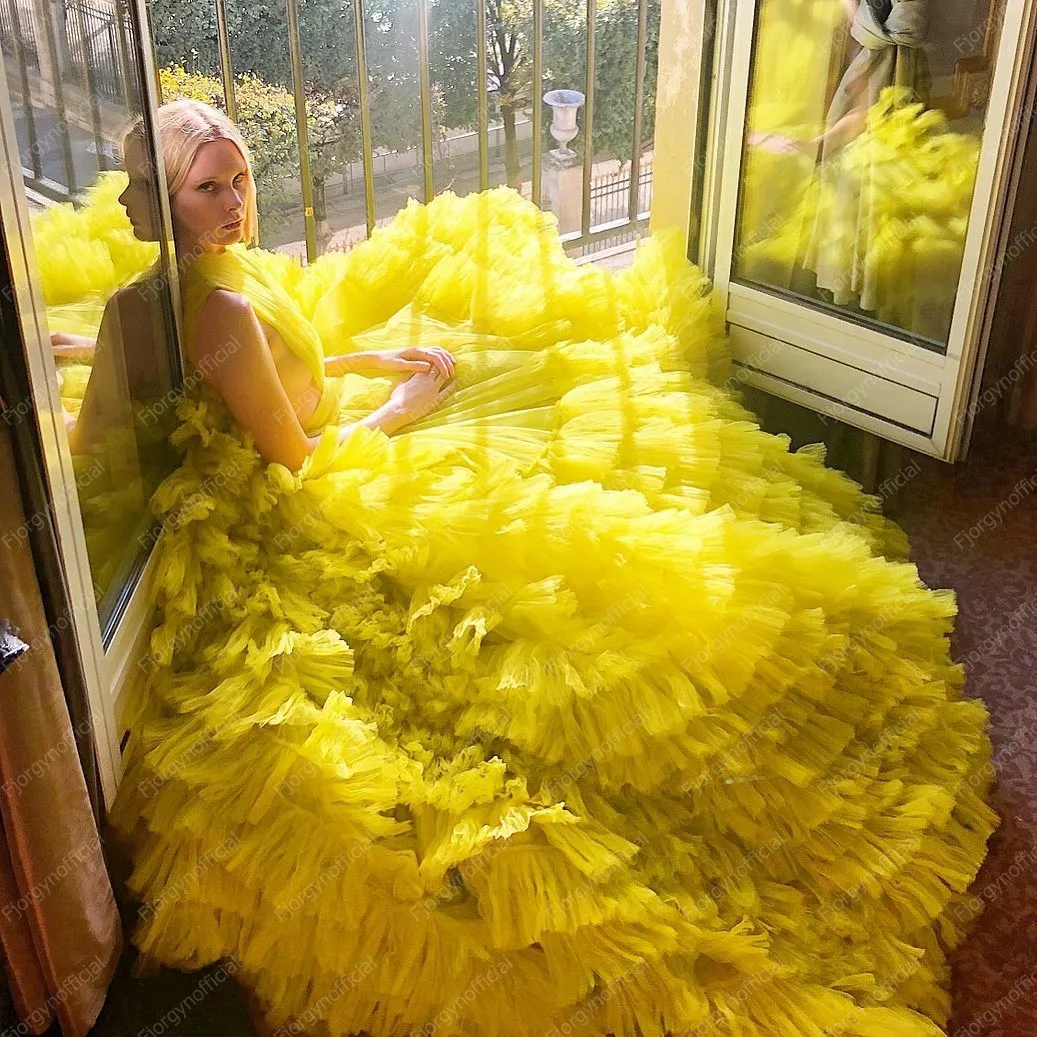 Новинка, пышные тюлевые юбки на заказ, пышная желтая Роскошная длин...