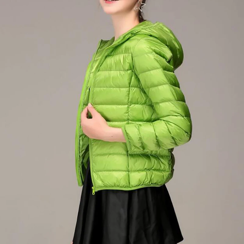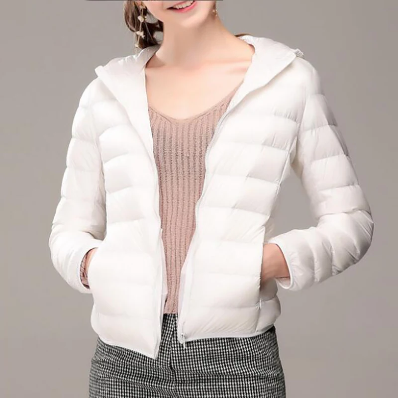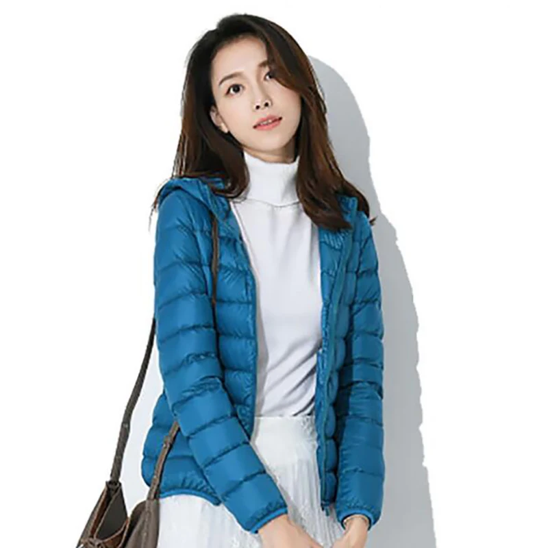 Куртка женская короткая, весна-осень 2020, Ультралегкая, тонкая, на молнии, однотонная, с капюшоном