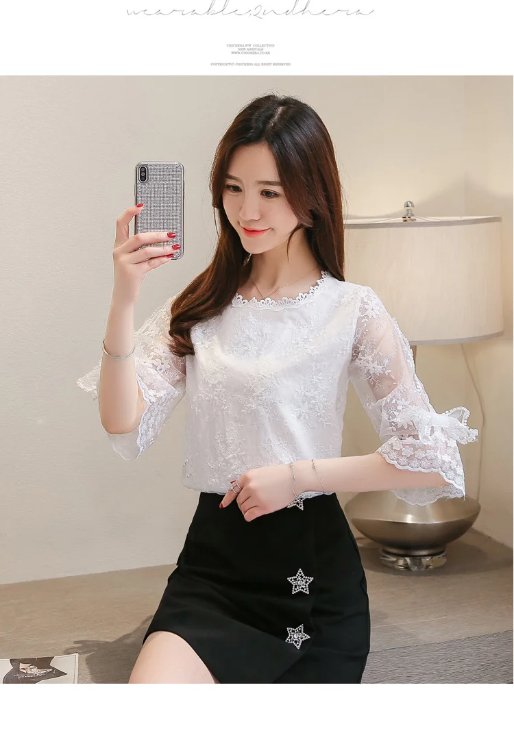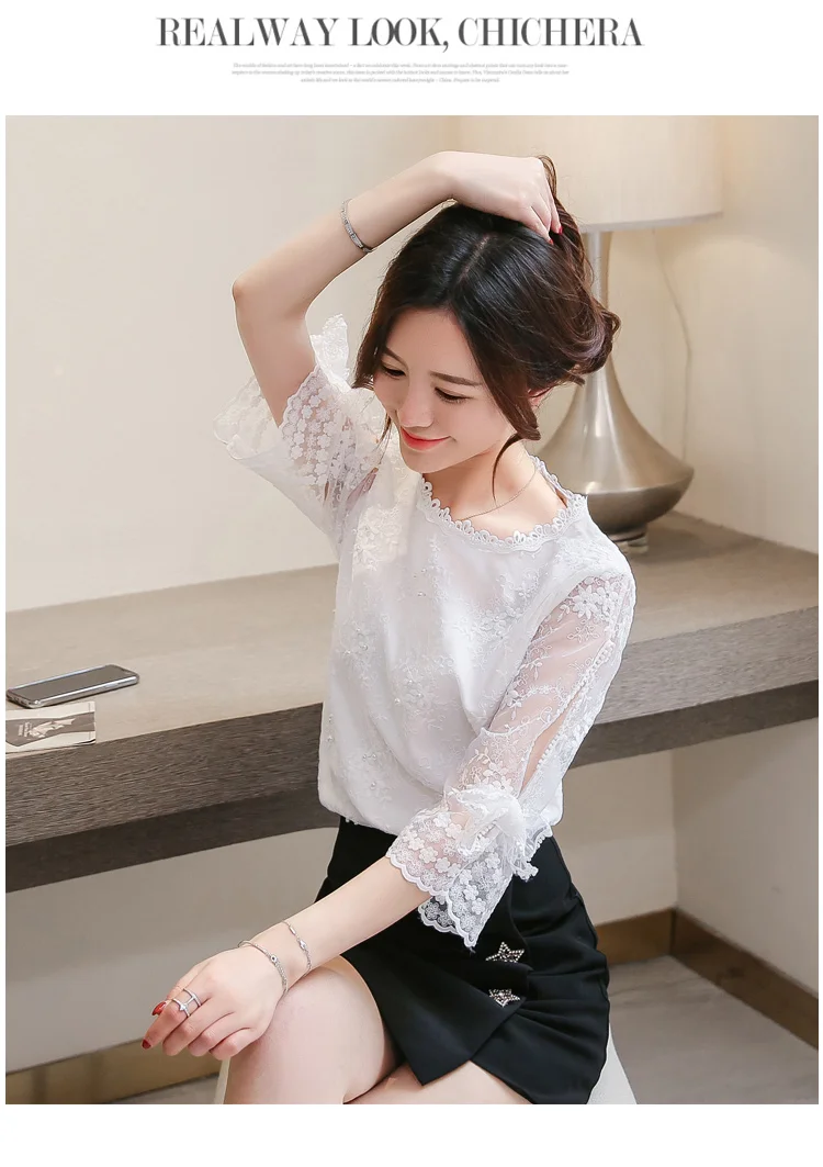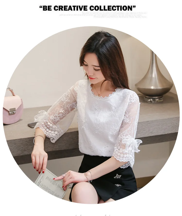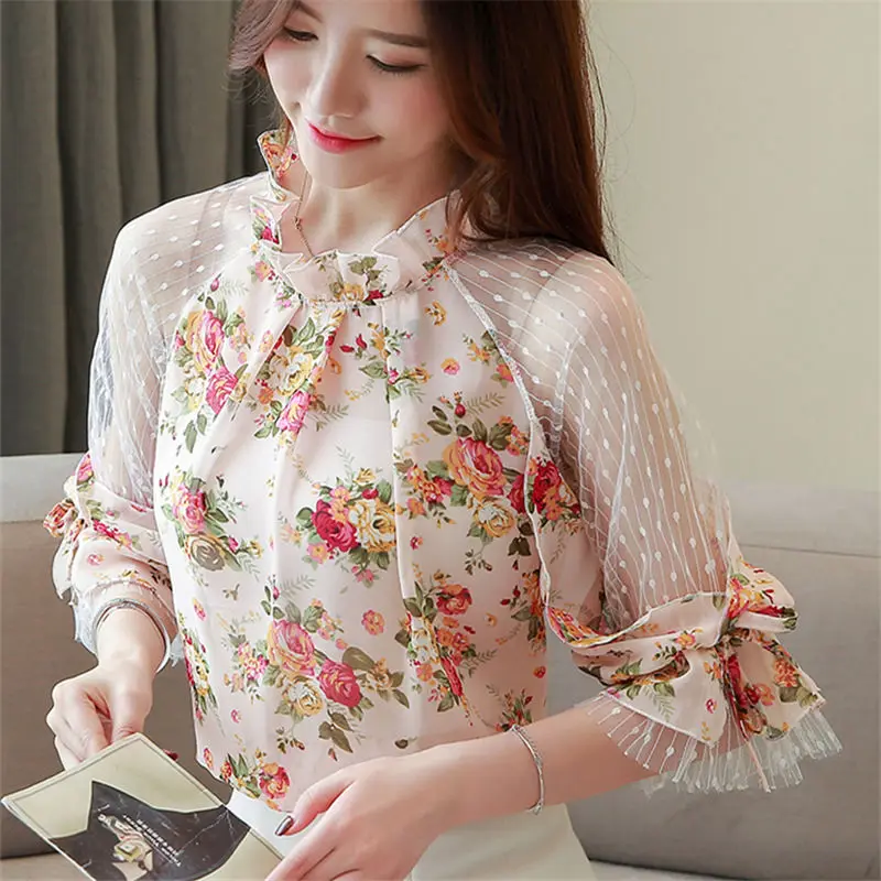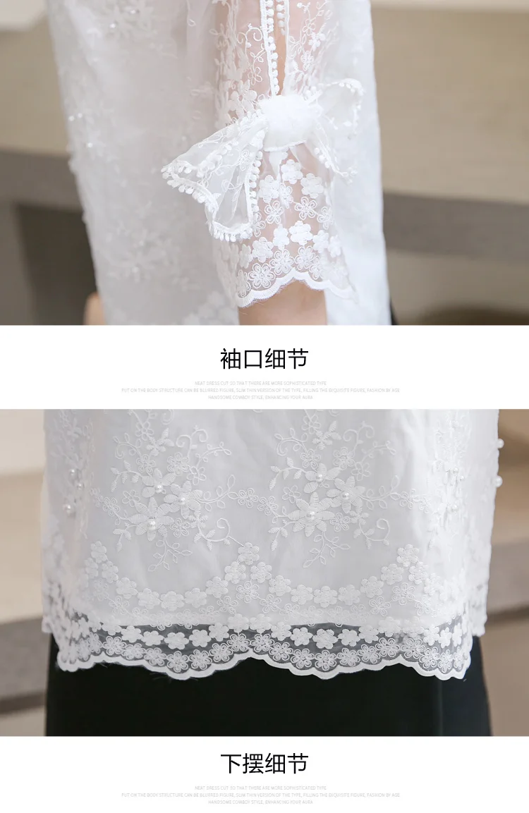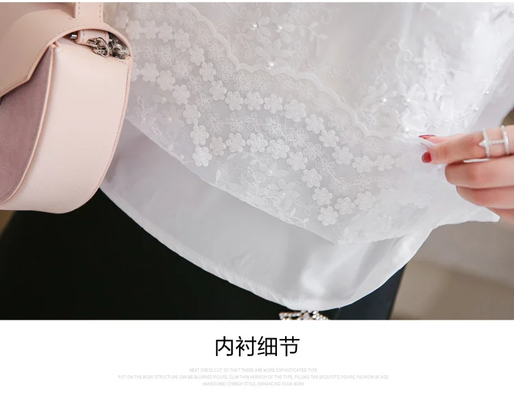 Женская шифоновая блузка с круглым вырезом, кружевная Свободная блузка с вышивкой и бантом, весна-осень 2020
