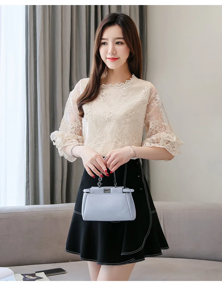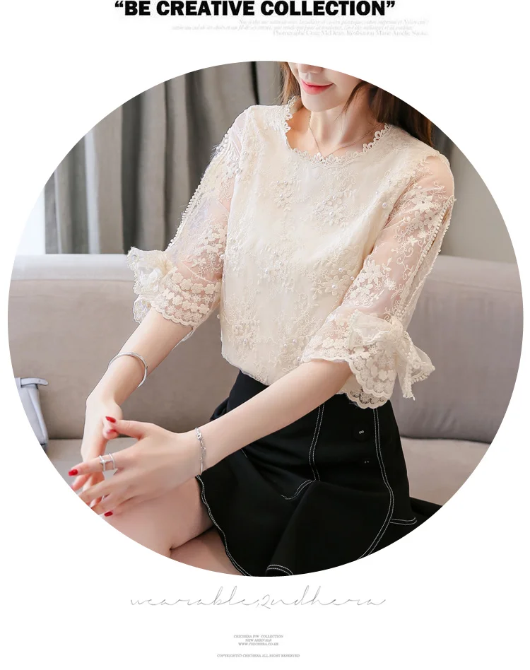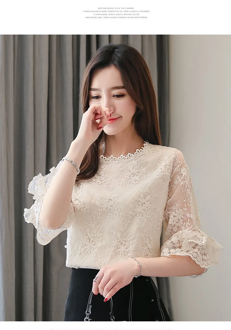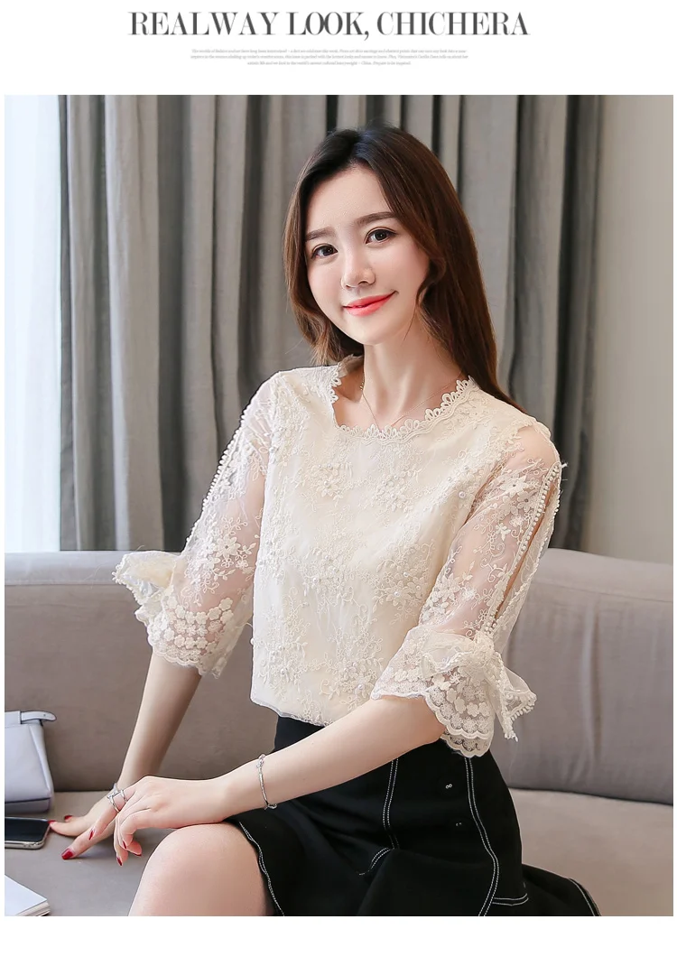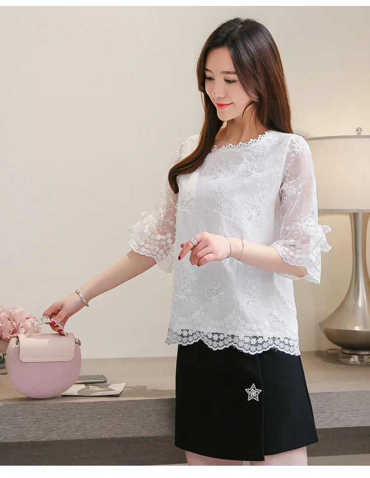 Женская шифоновая блузка с круглым вырезом, кружевная Свободная блузка с вышивкой и бантом, весна-осень 2020