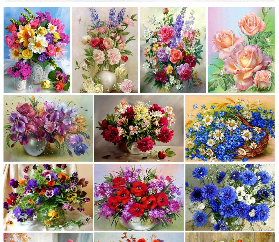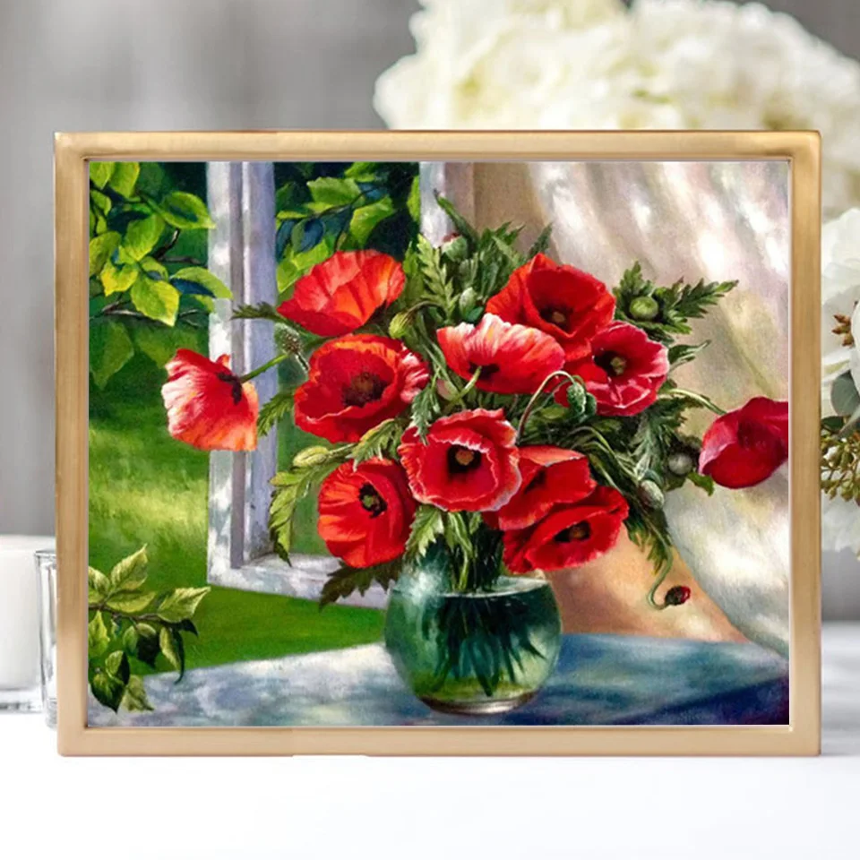 Картина для алмазной вышивки 5D "сделай сам", ваза с цветами, квадратная вышивка набор с розами, картина для стразы, украшение для дома, подарок