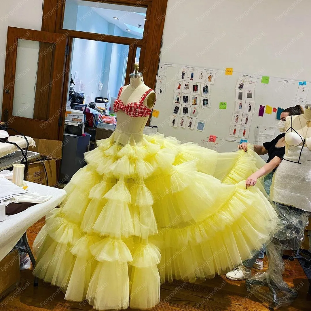 Новинка, пышные тюлевые юбки на заказ, пышная желтая Роскошная длинная юбка макси для женщин и девушек с многоярусными оборками для вечеринки, свадебная юбка