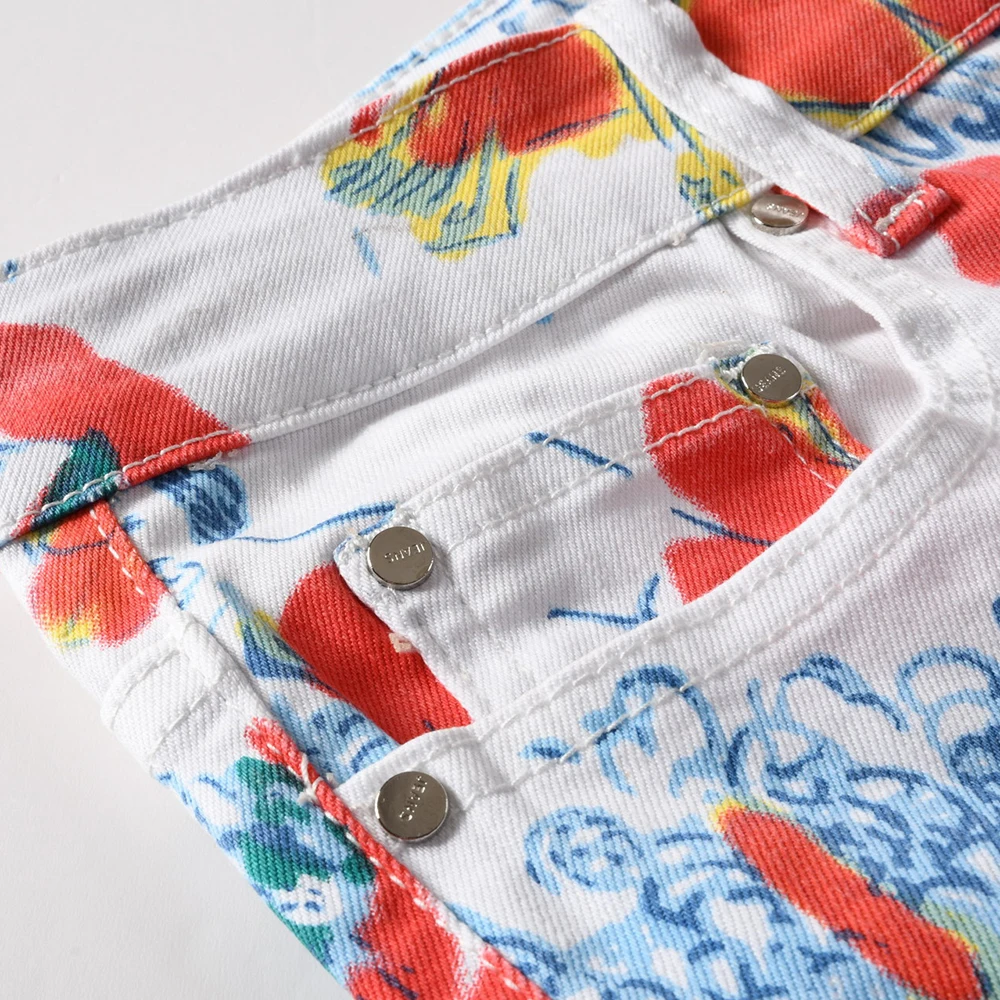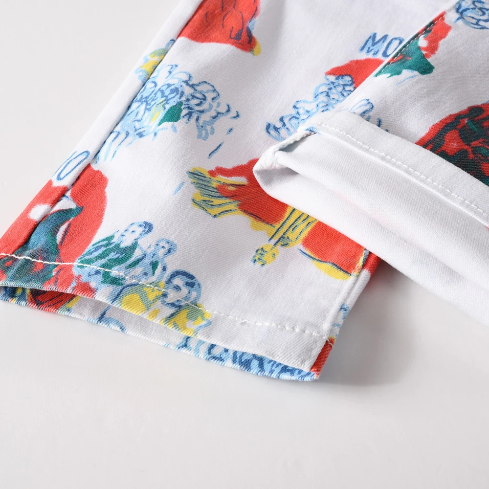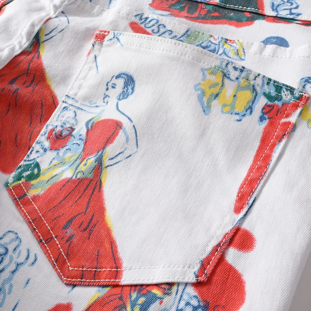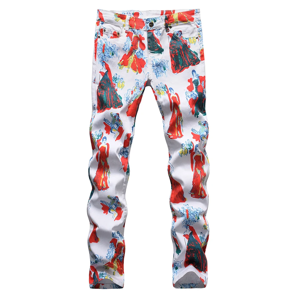 Мужские красивые джинсы с принтом для девочек, модные тонкие Стрейчевые джинсы красного и белого цветов Y2K, брюки