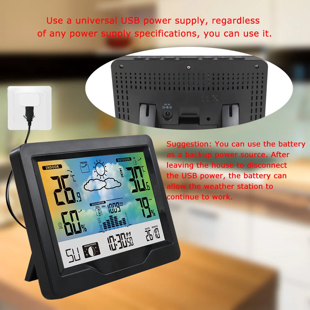 Метеостанция цветной экран цифровой USB Температура Влажность Время Дата дисплей будильник цифровые часы