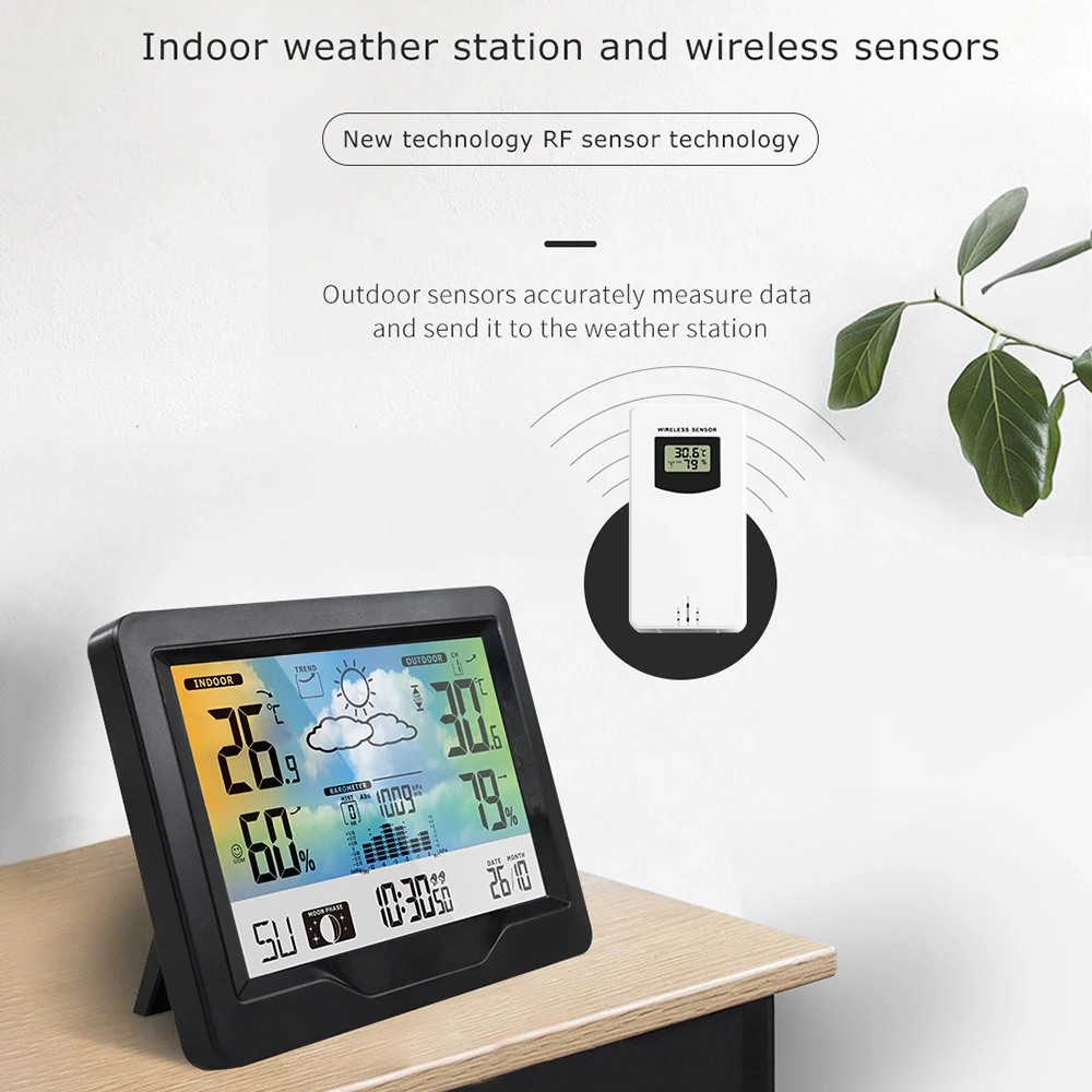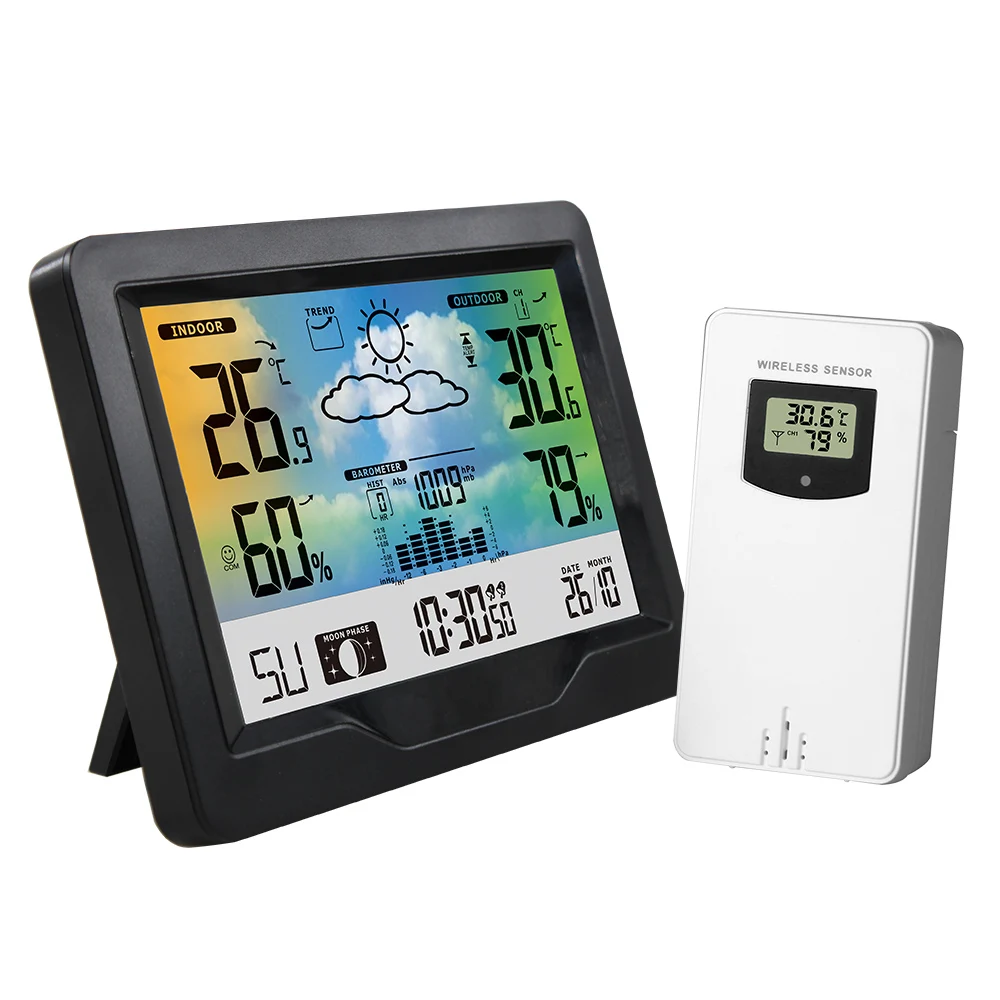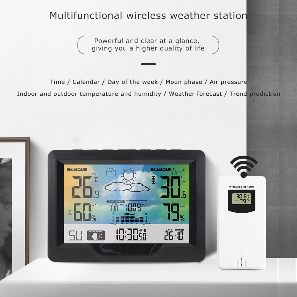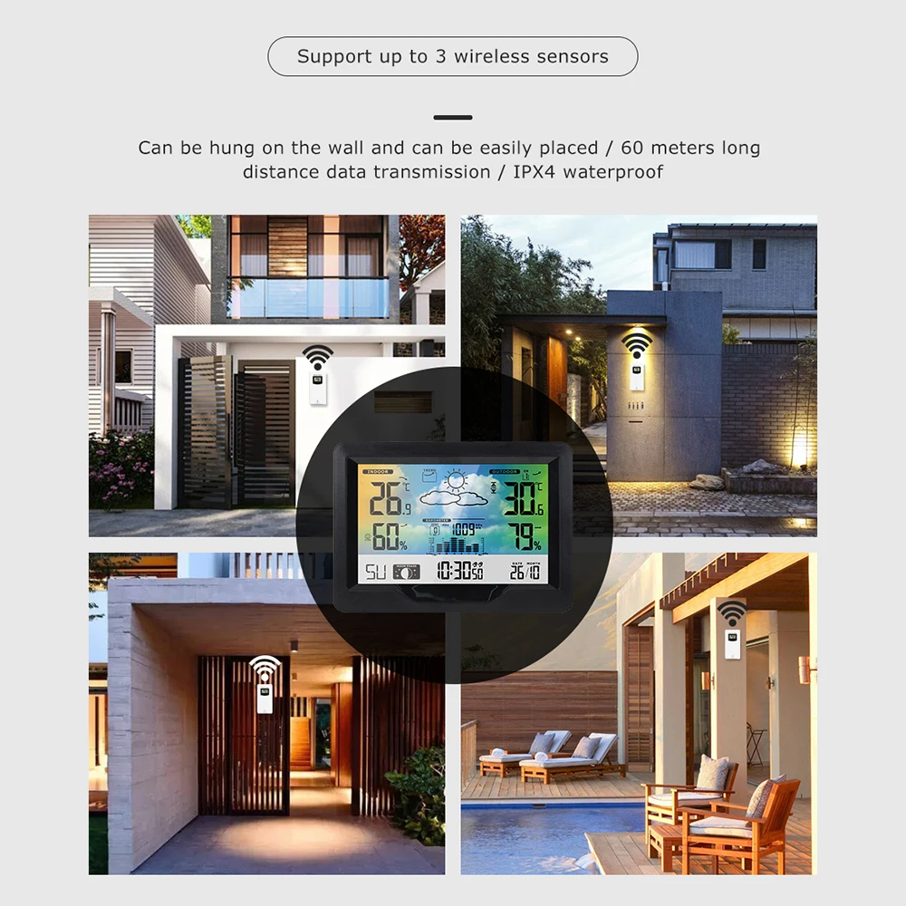 Со встроенными пятью языками (EN IT FR SP GE), широко подходит для использования в большинстве стран. Метеостанция подходит для дома, школы, офиса, больницы, ресторана, отеля и т. д., многочисленные функции которой принесут вам повседневную жизнь много удобства.