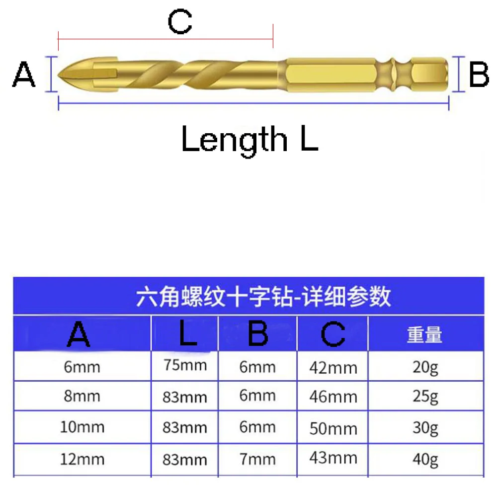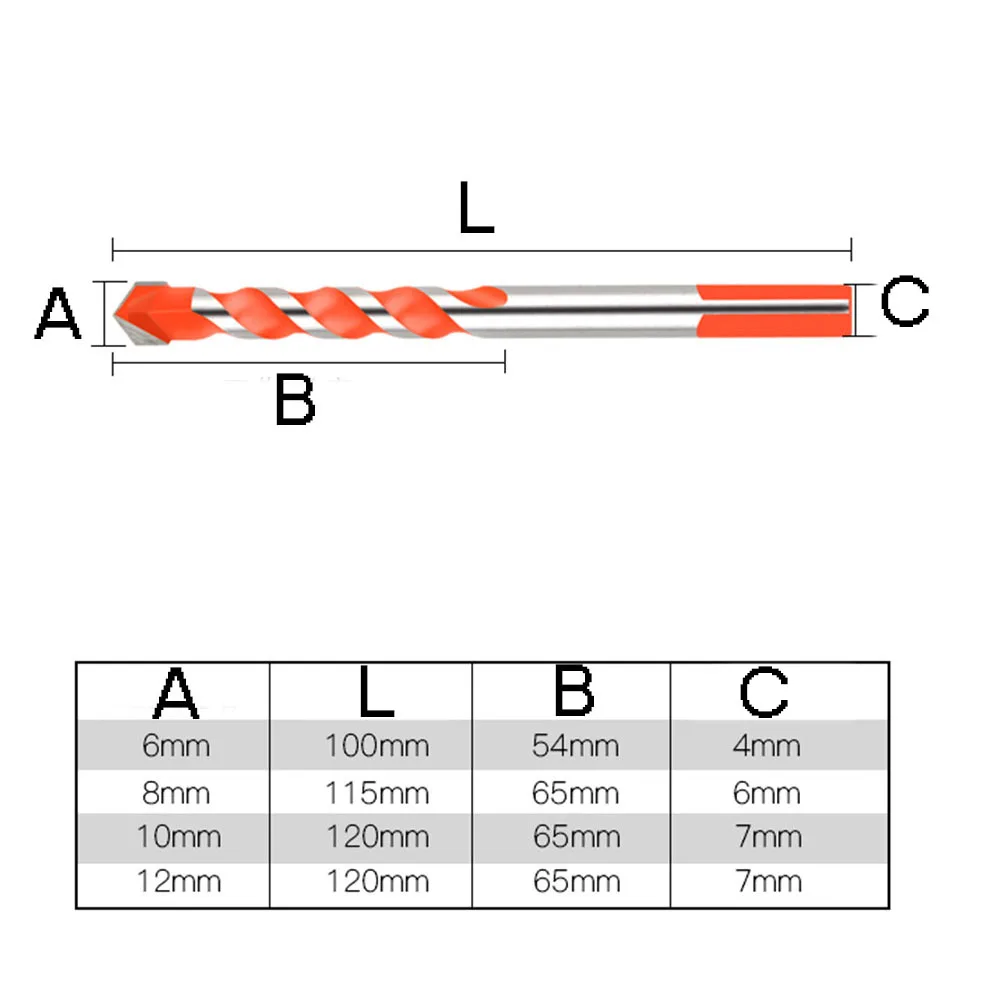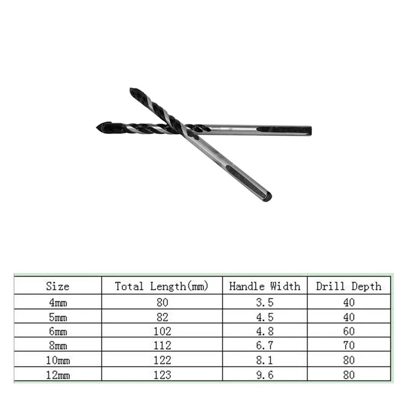Сверла по стеклу 6 мм8 мм10 мм12 мм, набор керамических головок, для бетона, карбида вольфрама, мощность сверло для стен, треугольные, многофункциональные