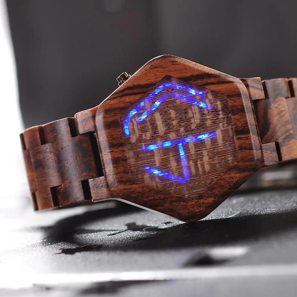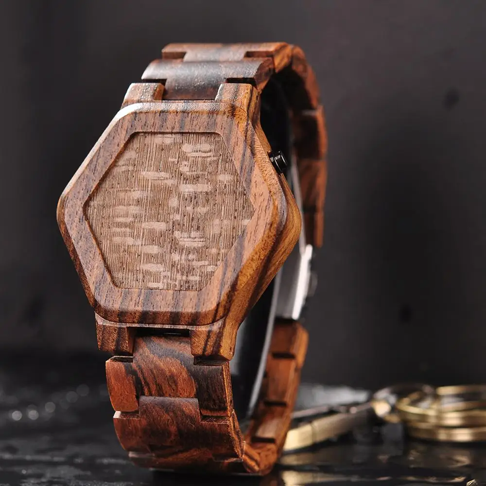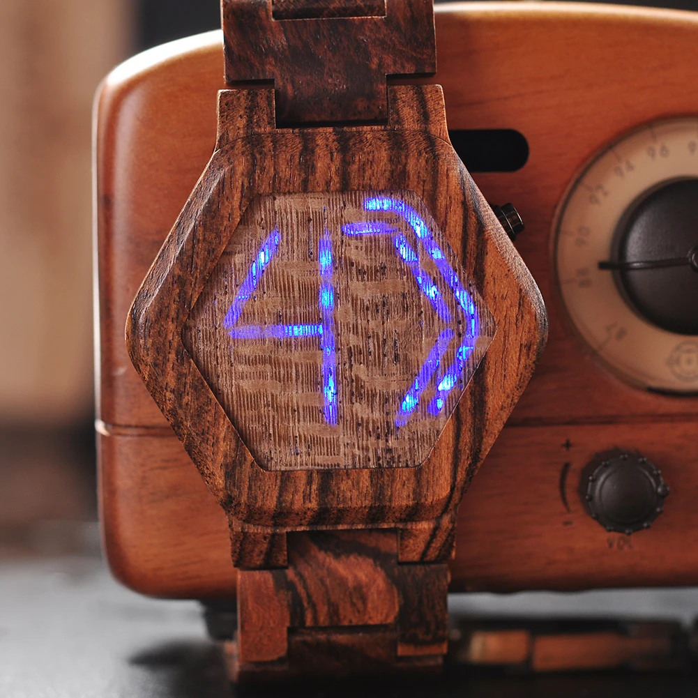 Мужские часы BOBO BIRD, светодиодный деревянные мужские часы, цифро...