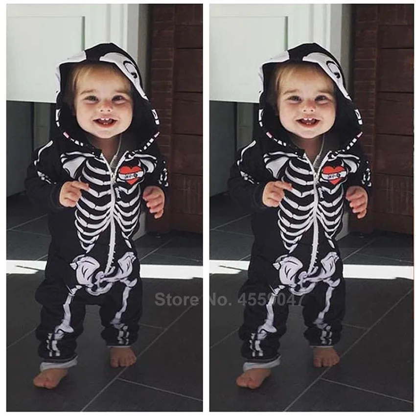 Комбинезон для мальчиков, в готическом стиле, с 3D принтом черепа, для Хэллоуина, Детские ползунки с капюшоном