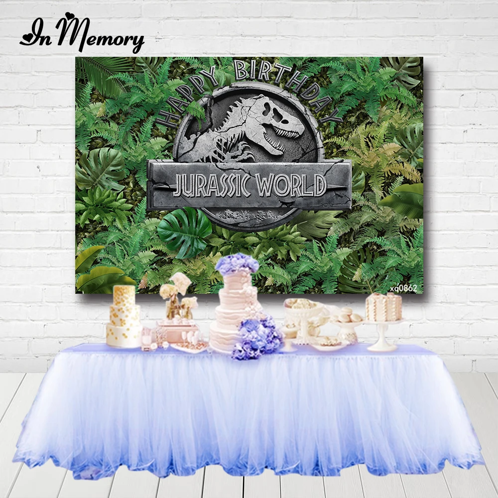 InMemory фон для вечевечерние НКИ Динозавров Юрского периода для мальчиков вечеринка на день рождения зеленые листья сафари джунгли фотофоны на заказ