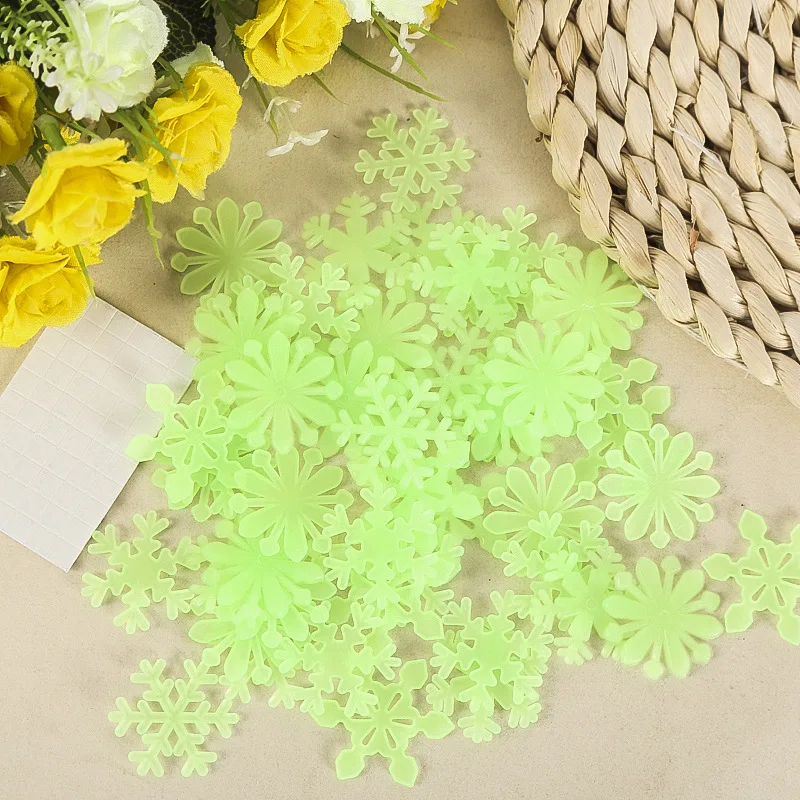 Набор светящихся наклеек в виде снежинок, настенные Светящиеся в те...