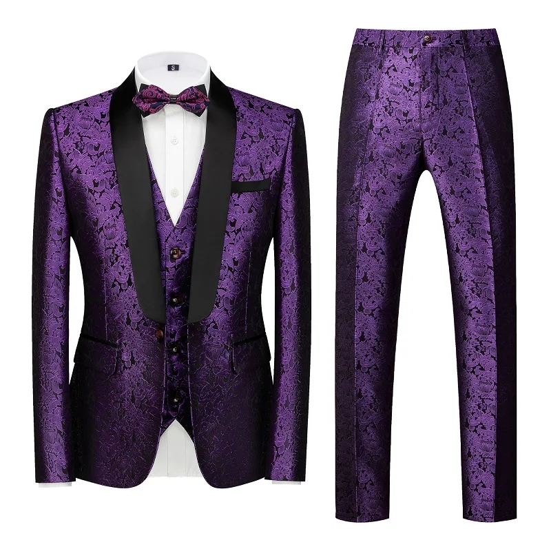 Костюм Свадебный Мужской с цветочным принтом, элегантный вечерний, королевский синий, серебристый, бордовый, белый, фиолетовый, 5xl, 6xl