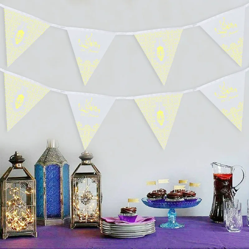 1 шт., 3 м бумаги, треугольный флаг Растяжка, овсянка, ИД Мубарак, счастливый Рамадан вечерние праздничные атрибуты, экологичное украшение