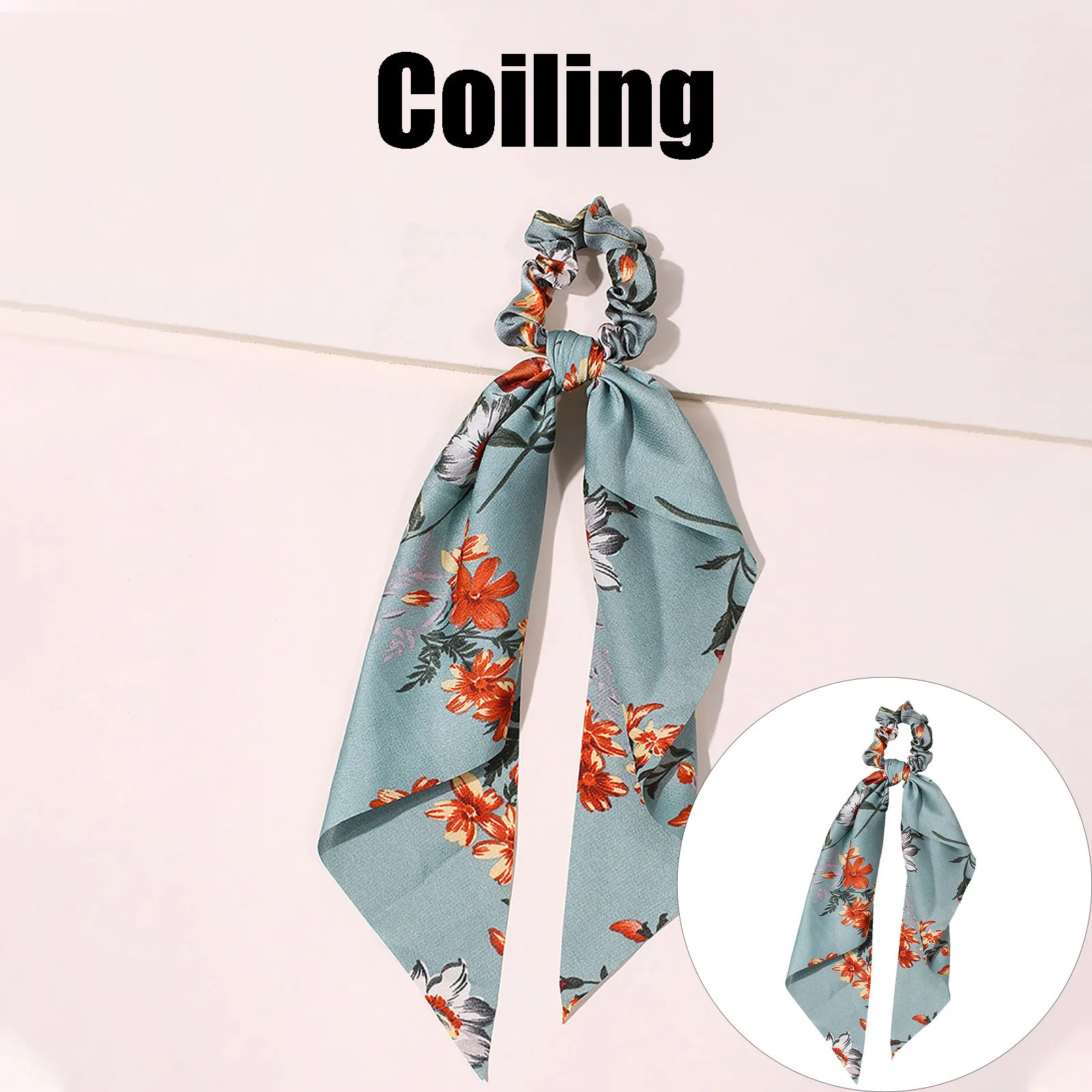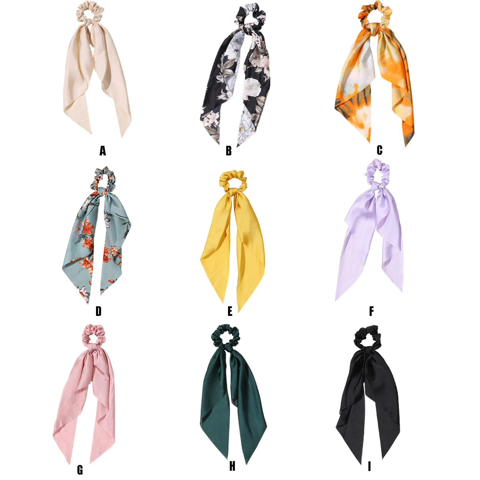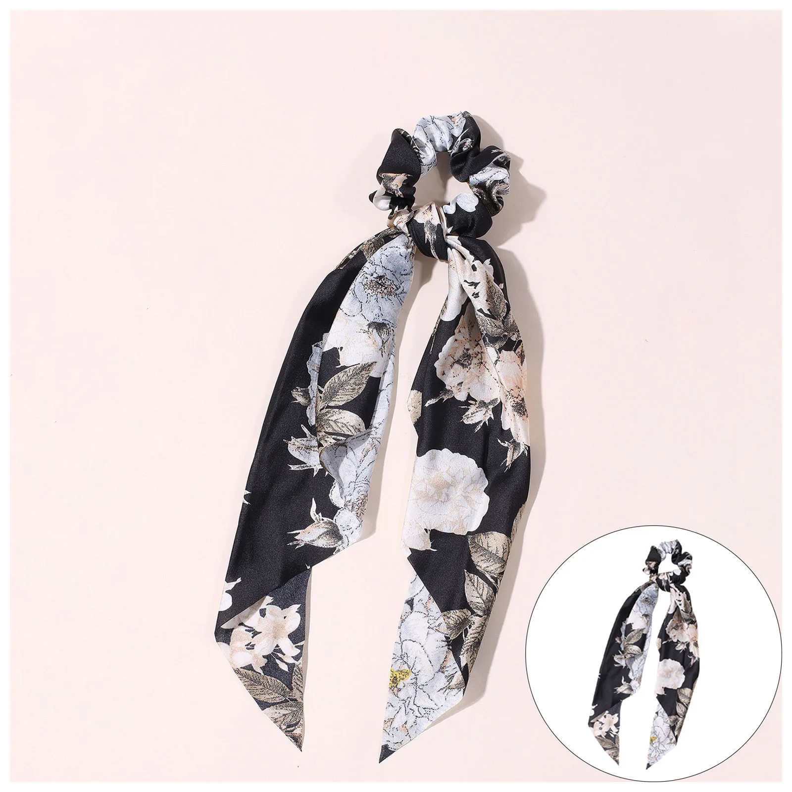 Женское шелковое платье с цветочным узором, бантом и принтом в Scrunchies "конский хвост", лента для волос для женщин аксессуары для волос с бантом резинка для волос, обтянутая тканью; Веревка повязки на голову