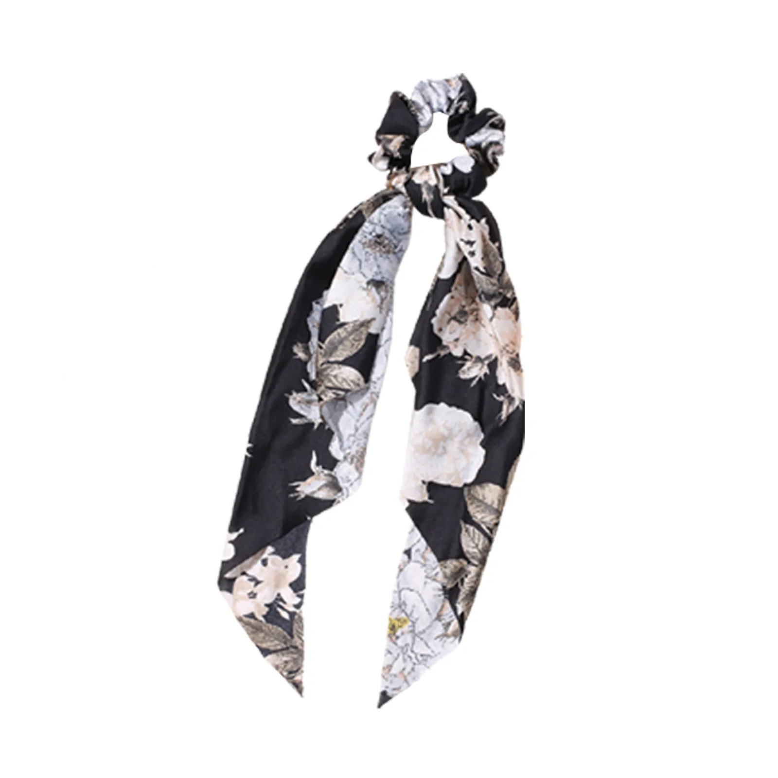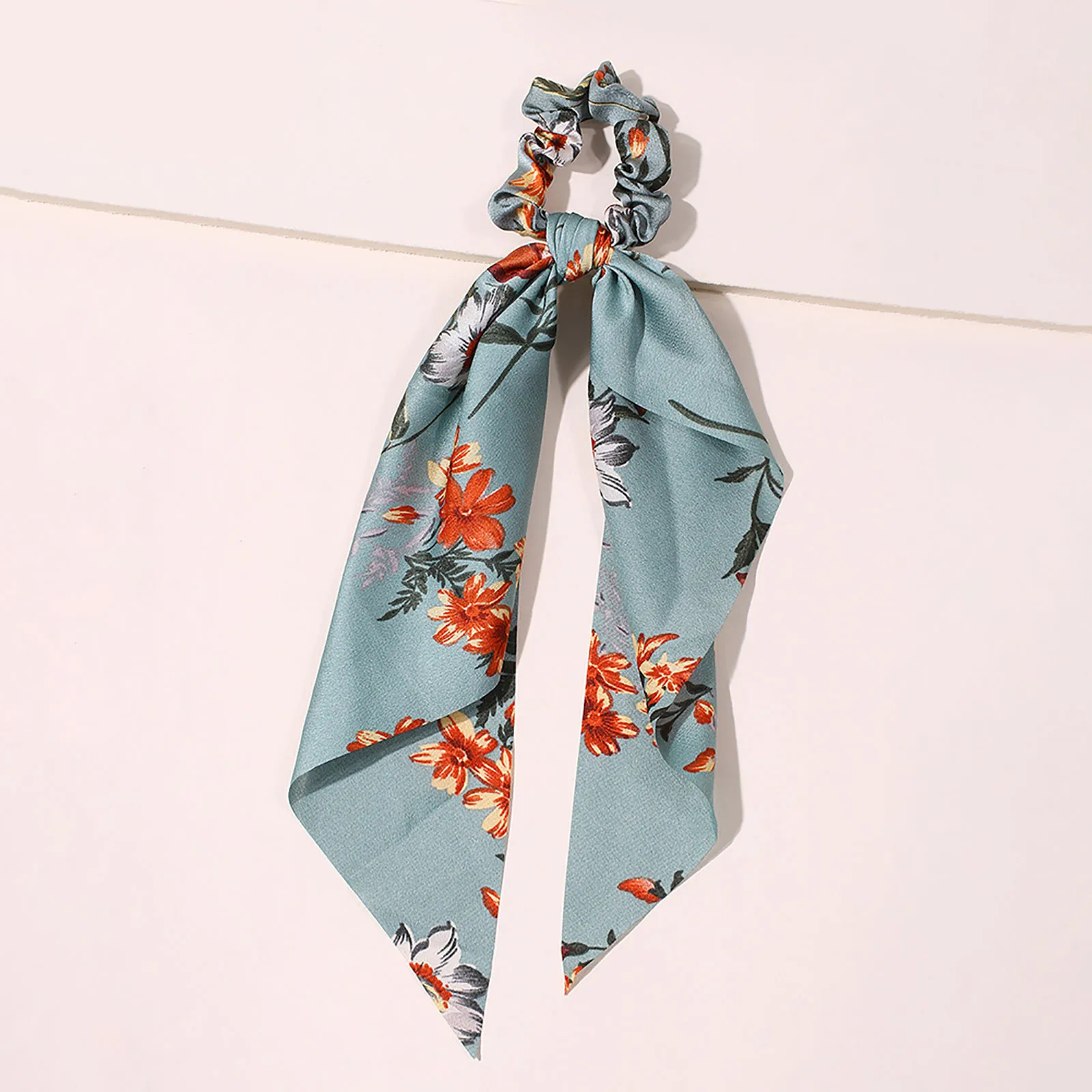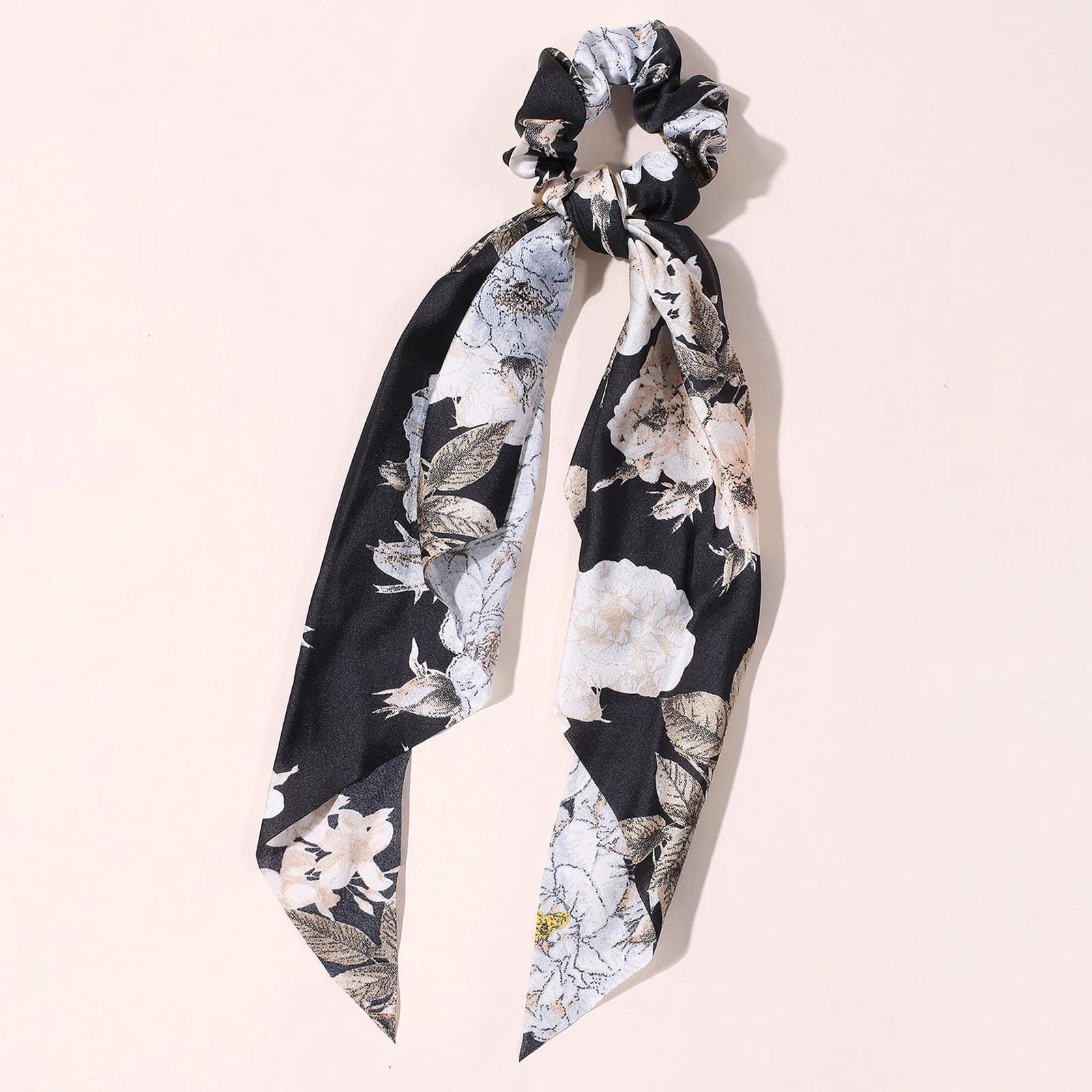 Женское шелковое платье с цветочным узором, бантом и принтом в Scrunchies "конский хвост", лента для волос для женщин аксессуары для волос с бантом резинка для волос, обтянутая тканью; Веревка повязки на голову