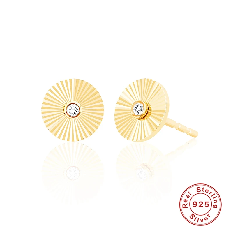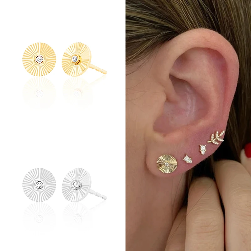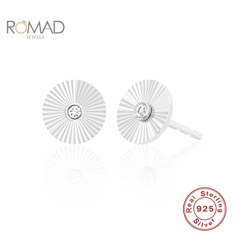 ROMAD, 100% серебро, 925 пробы, серьги-гвоздики, Европейская и американская мода для женщин и девочек, бриллиантовые серьги в форме диска, женские серьги