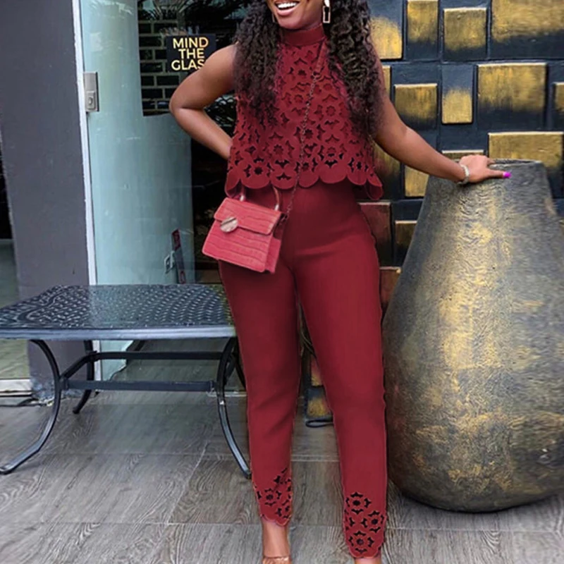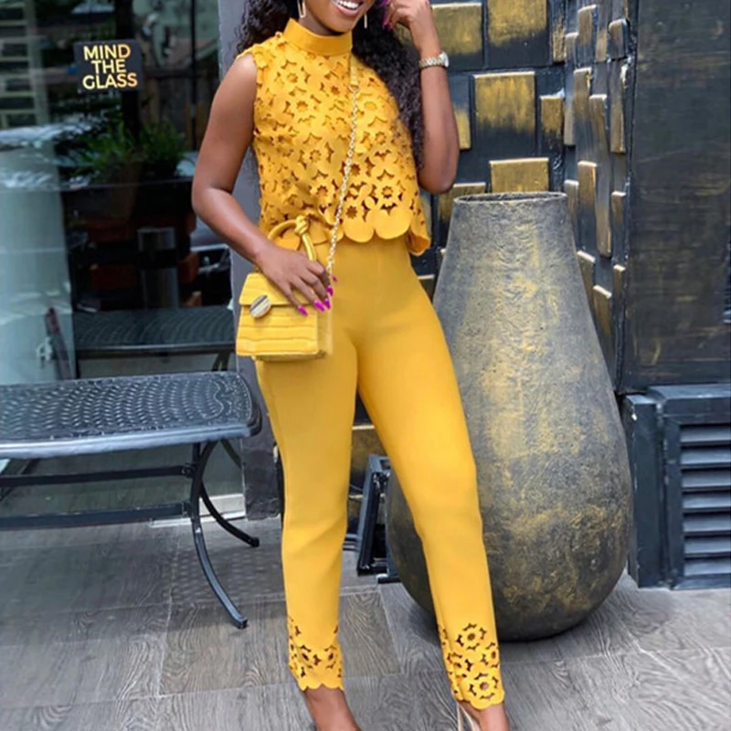 Летний женский формальный костюм из 2 предметов со штанами 2021, модный шифоновый топ без рукавов + узкие рабочие длинные штаны, комплект для 4XL