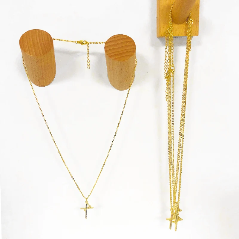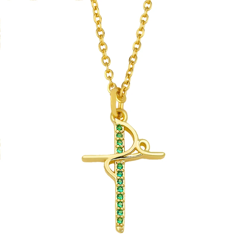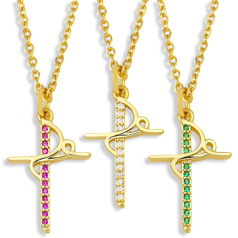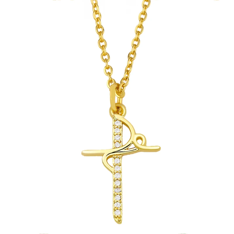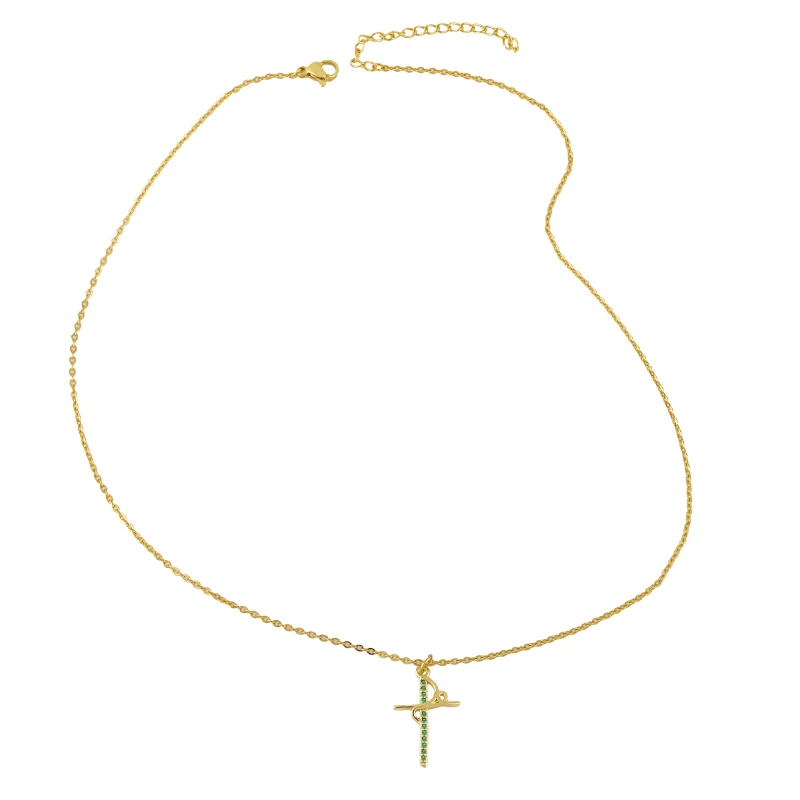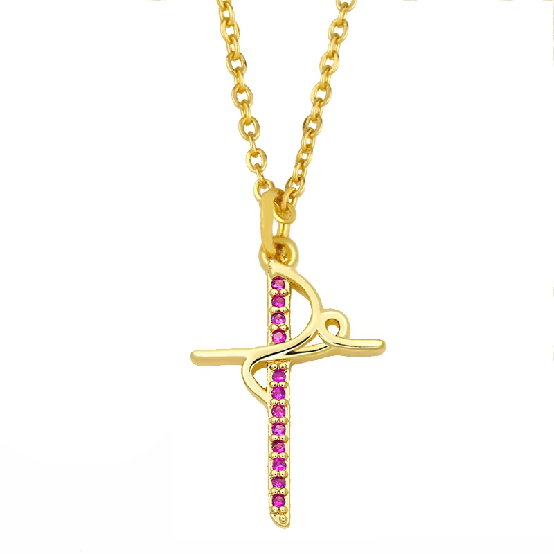 FLOLA хрустальный крест ожерелье для женщин камень Золотая цепочка с Иисусом ожерелье кулон с фианитом христианская Бижутерия Подарки nkes84