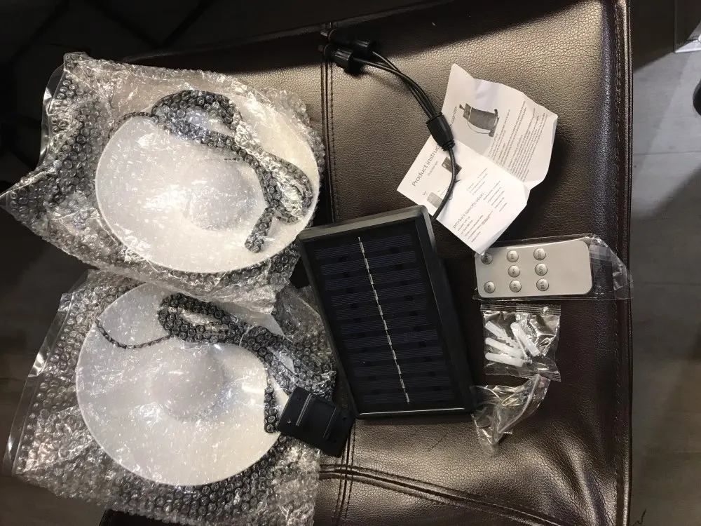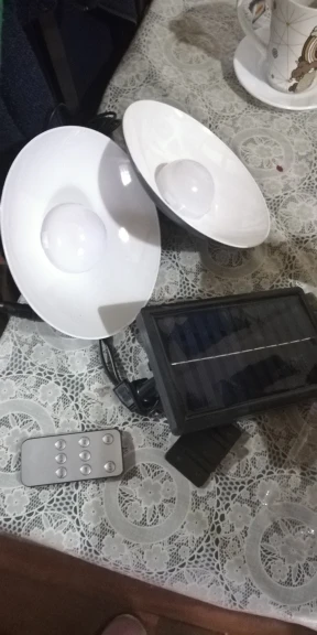 Освещение не так уж и много. Солнечная тарелка маленькая около 16 см х 8 см на глаз. Это тарелка, которая содержит батареи. Он имеет ежедневный датчик. Пульт дистанционного управления не соответствует, пока он не сделан ночью. Пульт дистанционного управления работает сам по себе на огнях. Мы обычно включаем свет, затем при повторном запуске второй включается. Продолжайте в том же духе. Так что иногда, когда вы даете ему два света, они включаются. Они работают на той же частоте. Один или другой включает свет. Я еще не пробовал, когда я установил четыре огня в одном и том же комнате. Продукт поставляется с очень простым руководством. Вы должны планировать вещи или попробовать их, но для этого я поставил свои комментарии, которые, я надеюсь, помогут. Хотя батареи поставляются с некоторой нагрузкой, приятно поставить доску утром на солнце днем, чтобы она перезаряжалась. Я еще не пробовал 18650 батарей, я думаю, что они или что-то в этом роде.