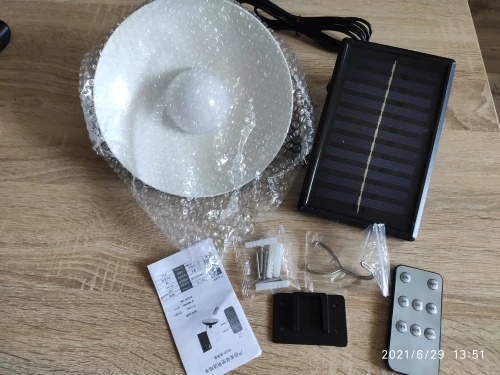 Доставка в срок DPD до указанного пункта выдачи. Всё целое, комплект полный, батарейка в пульте есть. Включается при отсутствии света на солнечный панели, каждая лампа управляется отдельно. Мне нравится.