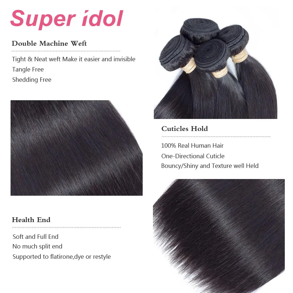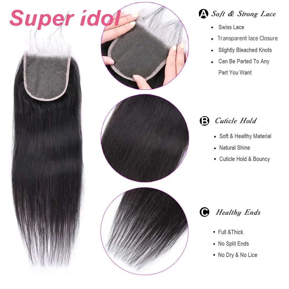 Пряди натуральных волос с застежкой, пряди бразильских натуральных волос с застежкой 4x4, прямые волосы с фронтальной частью, не Реми, 30, 32