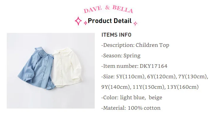Рубашки для девочек DBM16477, с вышивкой и надписью dave bella, на ...